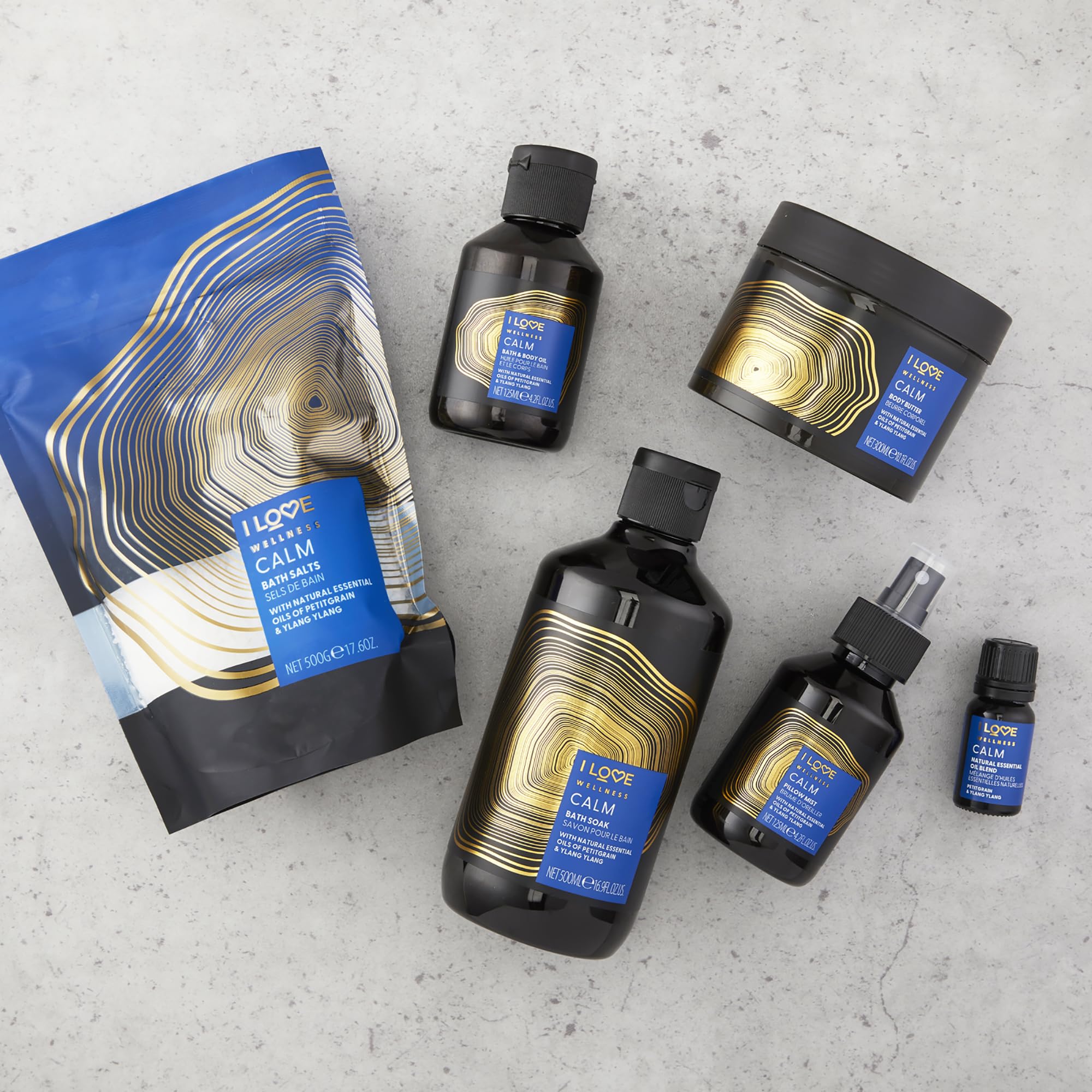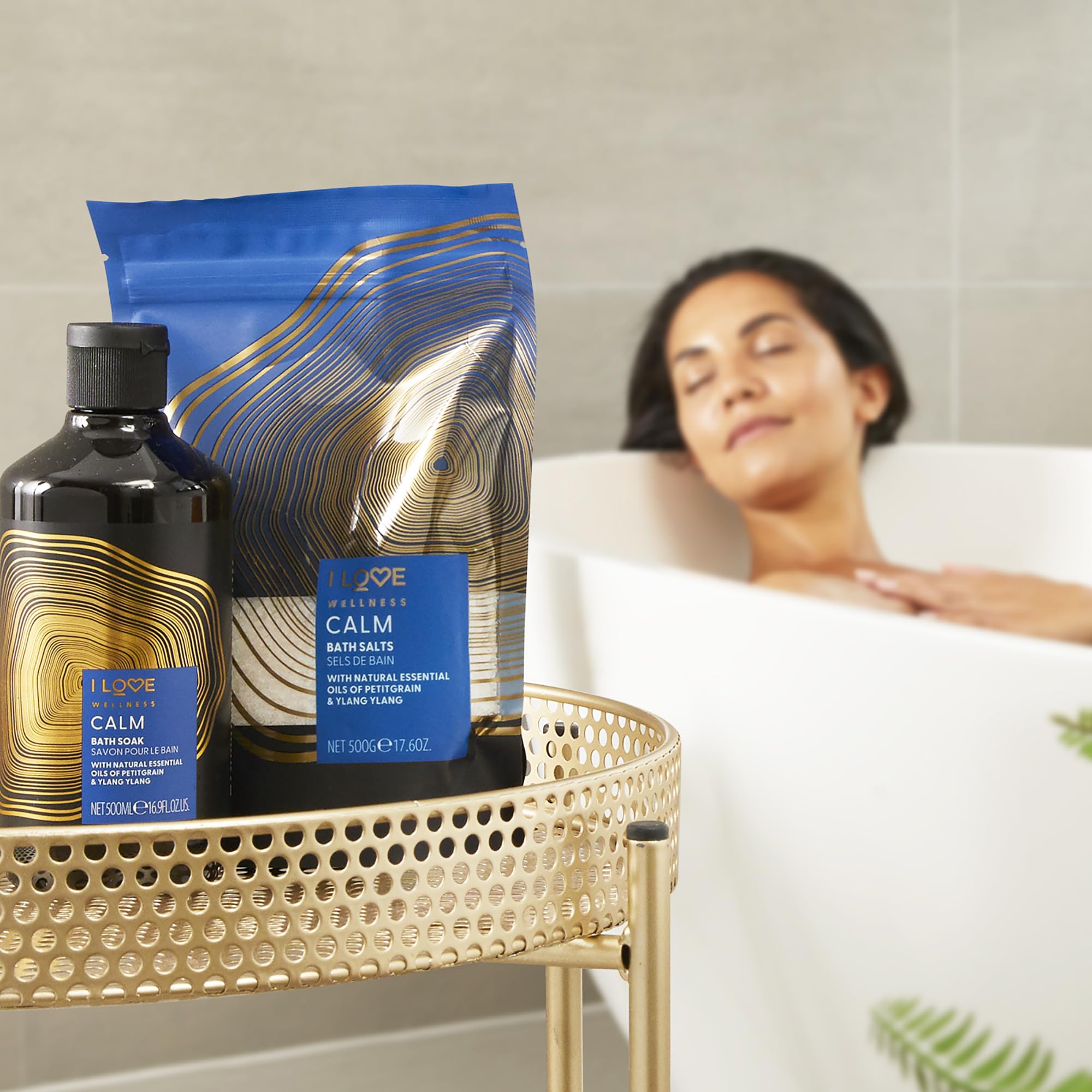 The I LOVE Wellness Calm Bath Salts are designed to cultivate mindful moments of serenity. This indulgent bath soak not only relaxes the body and mind but also lavishes your skin with the moisturizing benefits of essential oils and extracts. Immerse yourself in mineral-rich sea salt and soothing chamomile extract, combined with a blend of geranium, mandarin, ylang-ylang, and lavender essential oils, crafted to envelop your senses in a cloud of calm. At I LOVE, our UK-made formulas are vegan, cruelty-free, and meticulously crafted with natural ingredients, ensuring your well-being while being free from harsh chemicals, parabens, petroleum derivatives, phthalates, and SLS. Elevate your self-care routine to new heights with I LOVE Wellness Calm Bath Salts.
