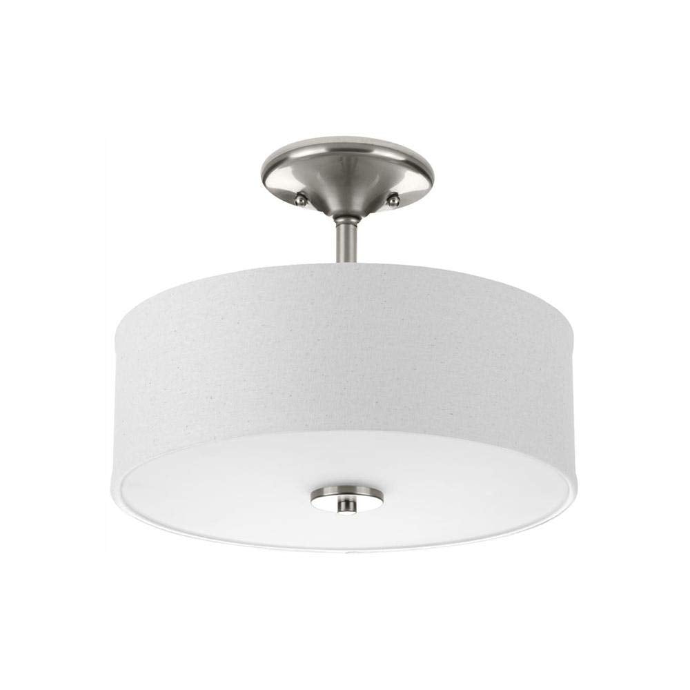 Illuminate your bedroom with the Inspire Collection 17-Watt Brushed Nickel Integrated LED Semi-Flush Mount. This modern lighting fixture combines sleek design with energy efficiency, providing bright and even illumination while enhancing the aesthetic of your space. The brushed nickel finish adds a touch of elegance, making it a perfect fit for contemporary interiors. With its integrated LED technology, this semi-flush mount offers long-lasting performance and reduced energy consumption, ensuring your room stays beautifully lit without frequent bulb replacements. Elevate your bedroom décor with this stylish and functional lighting solution.
