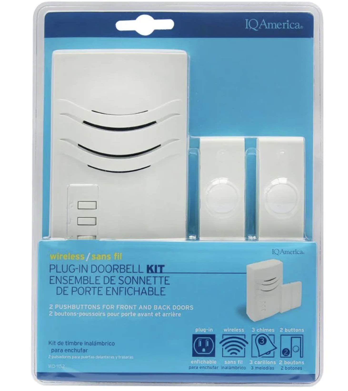 IQ America products increase security to your property, save energy/money, and help to welcome your visitors. Our products encompass a variety of solutions for your home and business. IQ America products are synonymous with innovation and quality. IQ America offers a wide variety of entry notification products. Our modern designs, built-in intelligence and a category-leading sound offering set our doorbells and buttons apart. IQ America's entry notification products can help achieve that peace of mind. From our traditional offerings to new innovative products, our set of solutions can transform your home to a welcoming AND SAFE environment. IQ America offers a variety of product types, including: Wired and Wireless options, Intelligent Hybrid Doorbell Technology, WI-FI Enabled Technology, Video/Audio, 2-Way Communication, Specialized Entry Solutions, Products for both home and business. This Plug-in chime comes with the door chime and 2 push buttons door bell only, It's simple aned easy to install.