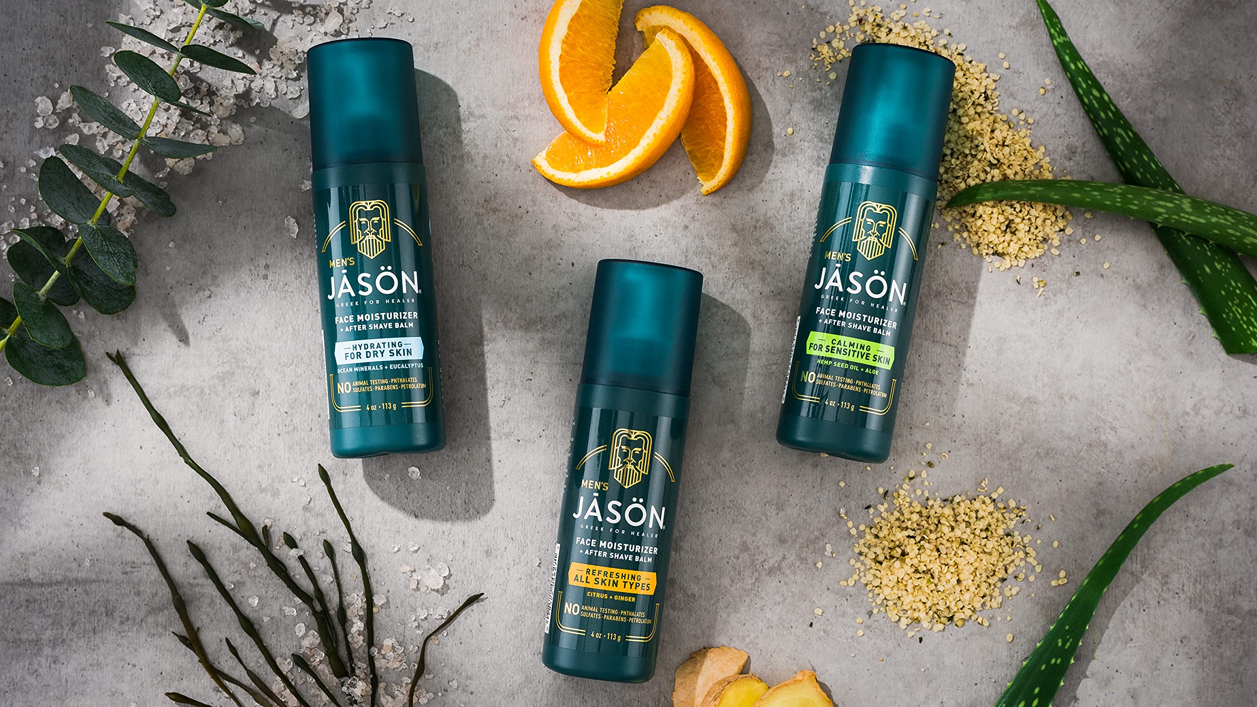 Description: Formulated for men s specific needs. Hydrate your dry skin with this daily face moisturizer + after shave balm. Infused with a blend of ocean minerals & eucalyptus this lightweight non-greasy lotion dries quickly and leaves your skin feeling nourished every day and after every shave. The Jason brand believes in the power of nature s ingredients to improve everyday wellness. We were pioneers of safer wholesome personal care and we continue to harness the earth s bounty of botanicals and essentials for blends that refresh and restore. Wellness is our second nature and it has been since 1959. Based on consumer testing.
