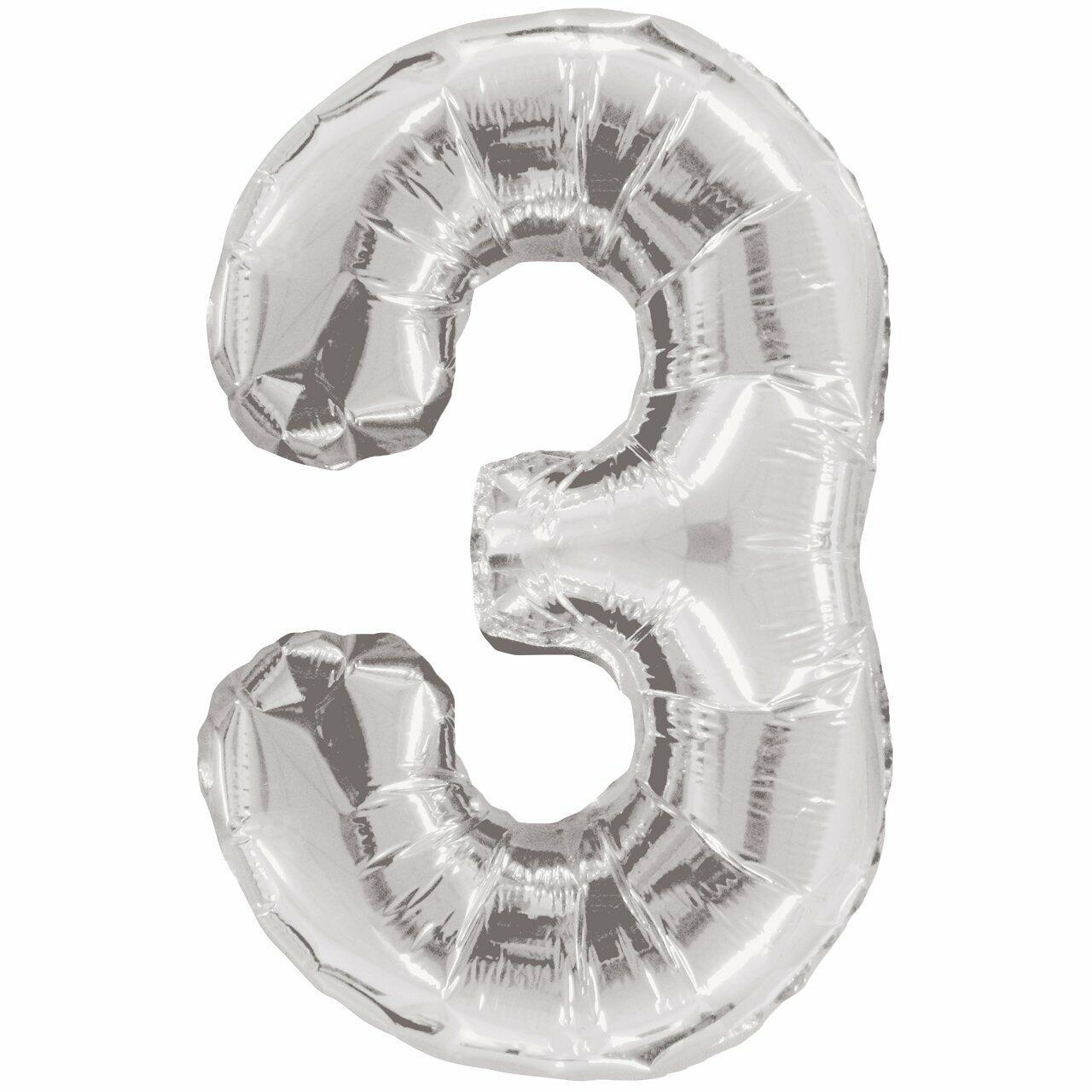 Kaleidoscope 34" Jumbo Number 3 (Three) Foil Mylar Balloon, Silver