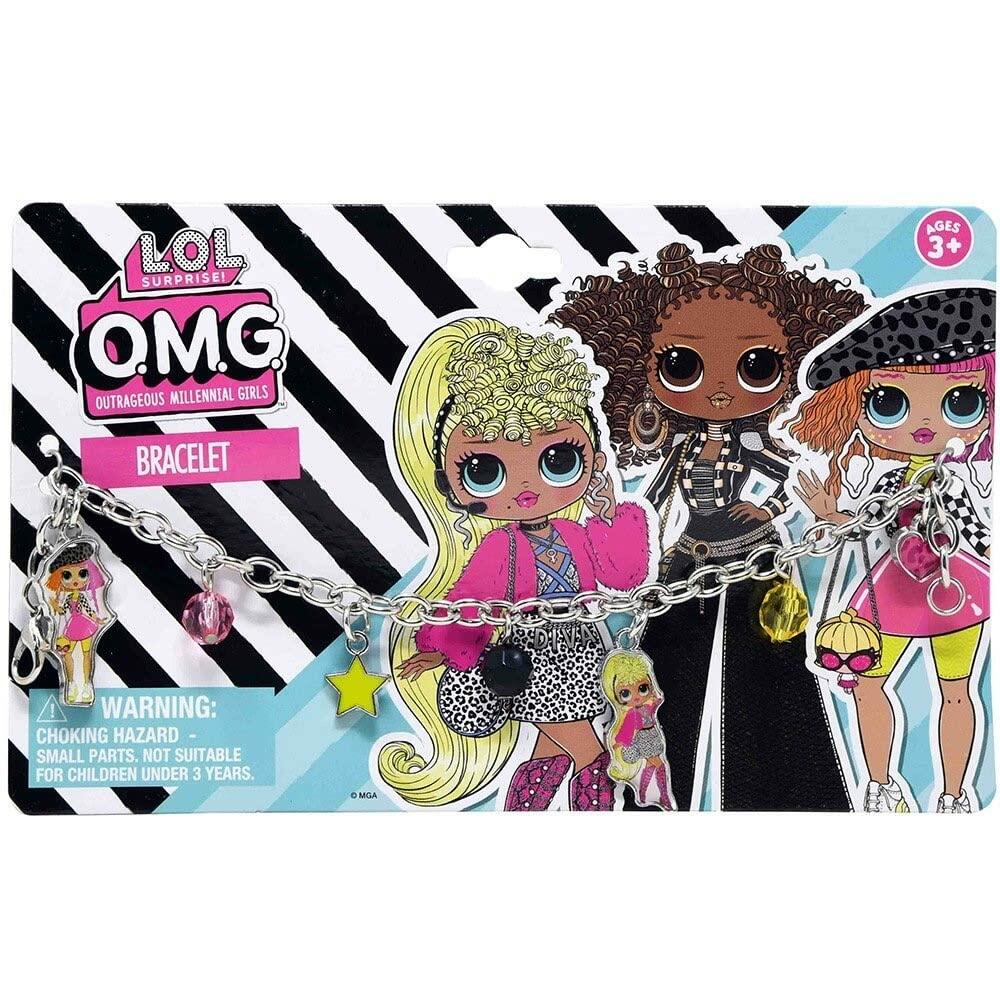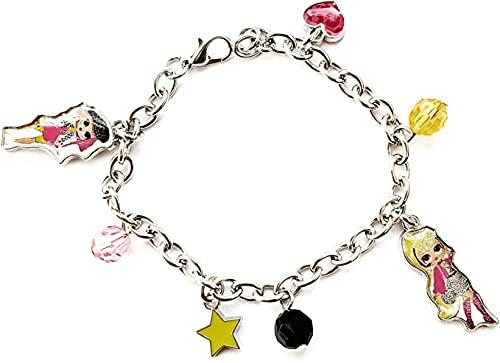 Make the most out of your little one\u0027s fashion dress up play time with this stylish LOL Surprise charm bracelet girls will love to wear and add to their collection of jewelry for teen girl. They will love to add style to their outfit on special occasions or everyday wear. Featuring images of your kid\u0027s favorite surprise dolls it makes the perfect girls charm bracelet for favors and prizes. Let your kids bring an extra touch of fashion and style to their playtime and dress up games with this LOL Surprise Charm Bracelet for kids. The L.O.L. Surprise kids bracelet comes with colorful charms featuring your little ones favorite LOL Surprise dolls characters hearts and stars charms and beads. It includes a lobster clasp for a more comfortable and secure fit. Little girls who love to dress up and wear bracelets will be thrilled to add this lovely L.O.L. Surprise! O.M.G. dolls bracelet with charms to their collection. It makes the perfect fashion accessory for kids to wear as they play with their surprise dolls and dress up together with their friends and family. Parents will make the day of any fashion jewelry fan. The LOL Surprise Charms Bracelet for Girls is made with high-quality resistant durable and child friendly materials that make it a stylish comfortable and safe jewelry for teen girls and kids to wear. Your little one will love the beautiful charms display on this metal alloy LOL Surprise Charm bracelet and wear it as dress up jewelry. Includes 1 L.O.L. Surprise! O.M.G. Charm Bracelet for little girls with Metal Charms and Beads and with a Lobster Clasp closure. It features little charms with colorful images of your little one\u0027s favorite LOL Surprise characters as well as a heart and a star bead charm. The metal alloy LOL charm bracelet measures 7 inches long perfect size for little girls\u0027 hands. Recommended for children ages 3 and older.