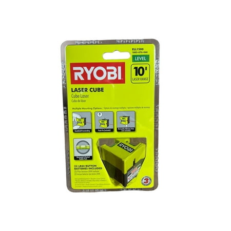 Handheld and freestanding design offers easy portability Included push pin for convenient and easy mounting into surface in Original Packaging Model: ELL1500 RYOBI introduces the Laser Cube. The Laser Cube is a handheld and freestanding laser. Its size portability and accuracy make it a great household item. The RYOBI Laser Cube features horizontal and vertical bubble vials for accurate leveling. A push pin is included for convenient and easy mounting straight into your surface. Removable adhesive strips (not included) are also a great option for mounting the laser cube. The Laser Cube includes a push pin and an operator s manual. Find the Factory Reconditioned version HERE Compact size for great portability Vertical and horizontal bubble vials for accurate leveling Multiple mounting options for your convenience 10 ft. laser range Convenient hands-free design Includes: (1) ELL1500 Laser Cube (1) push pin (3) LR44 button batteries and operator s manual