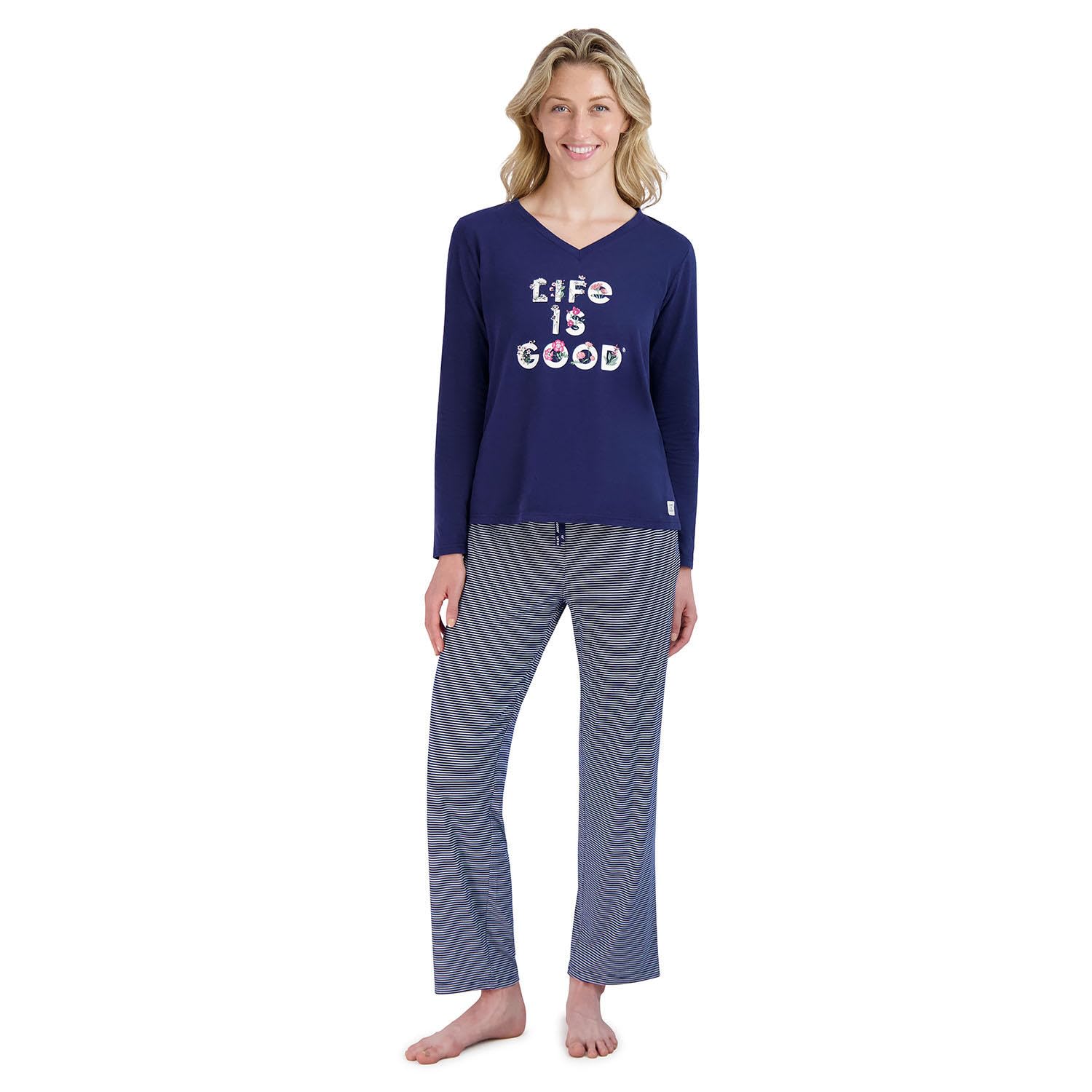Life is Good Ladies 3 Piece PJ Set (Navy)