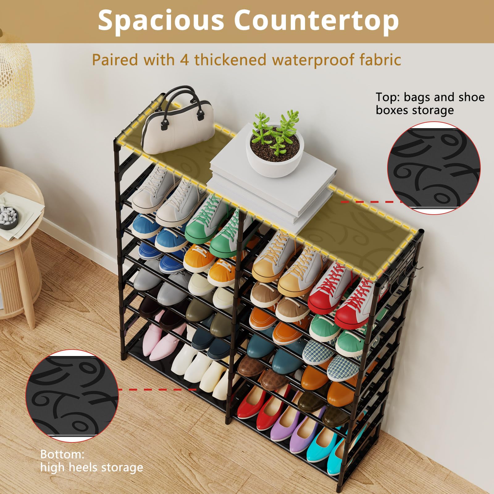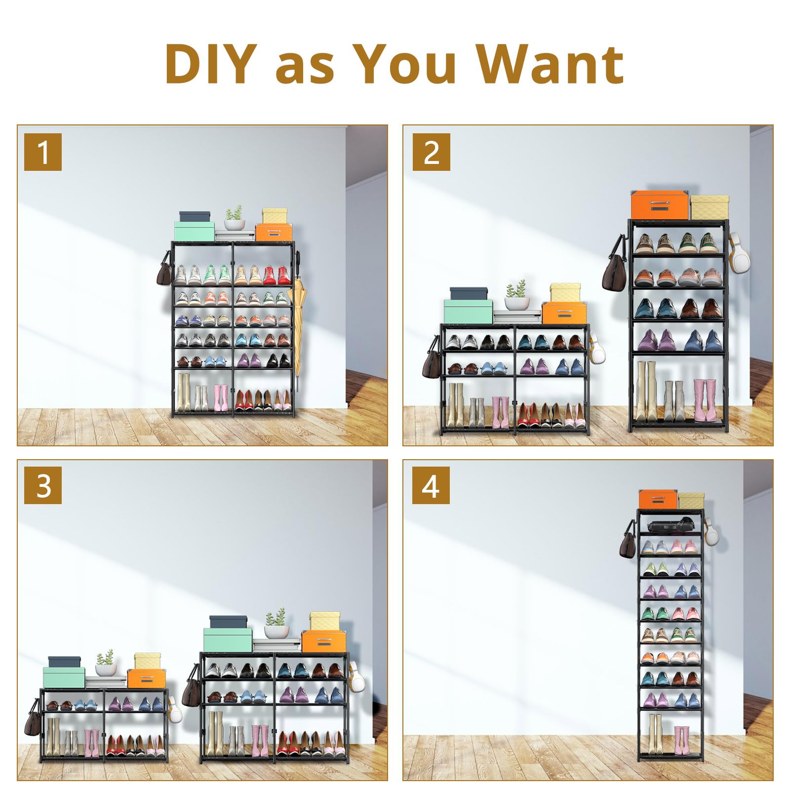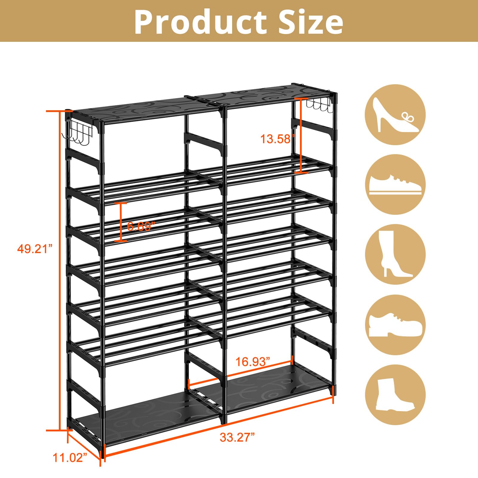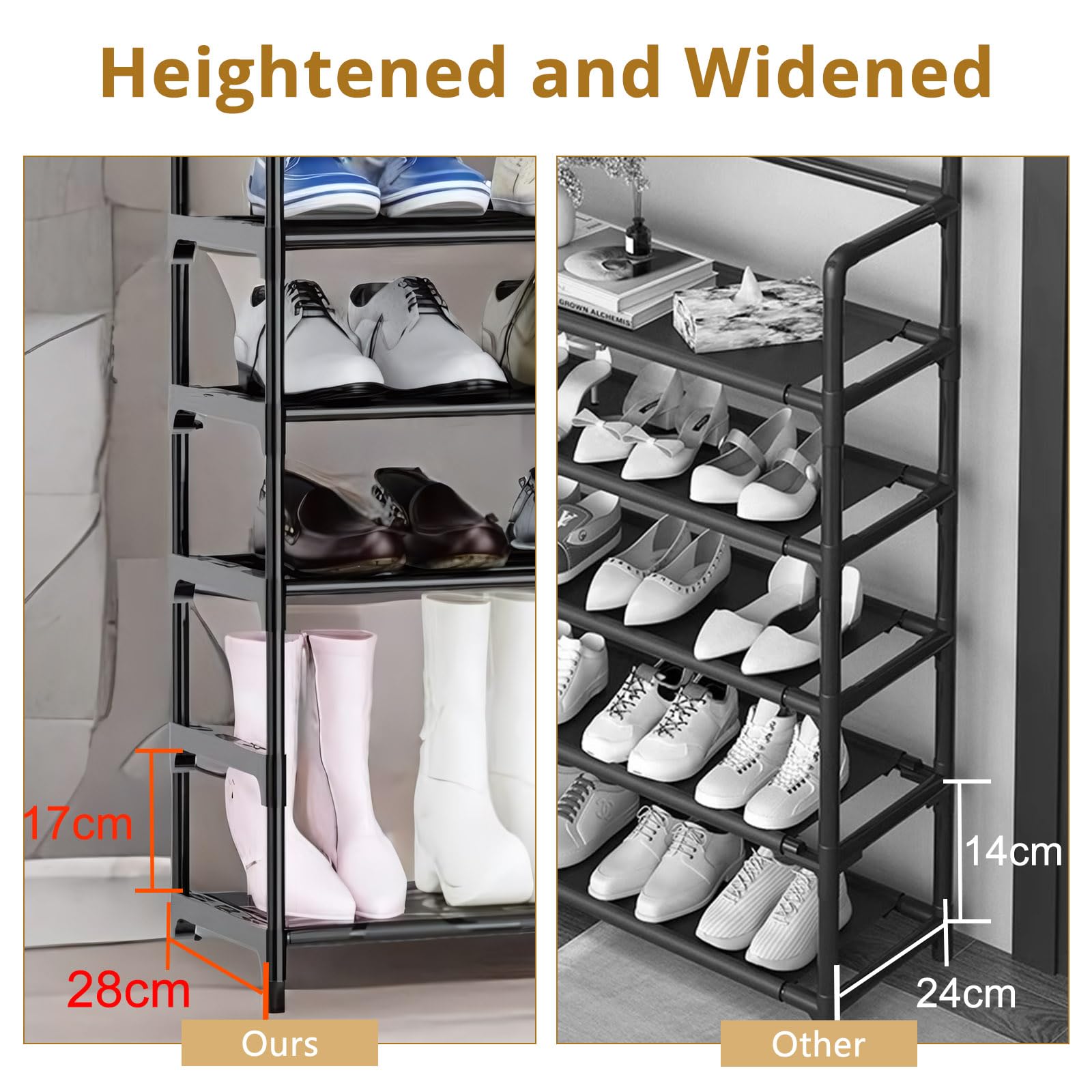 KEEP SHOES NEAT WITH 7-TIER METAL SHOE RACKThe 7-tier tall shoe rack stackable helps organize your shoes and boots meanwhile clean your room and staying away from the mess.
