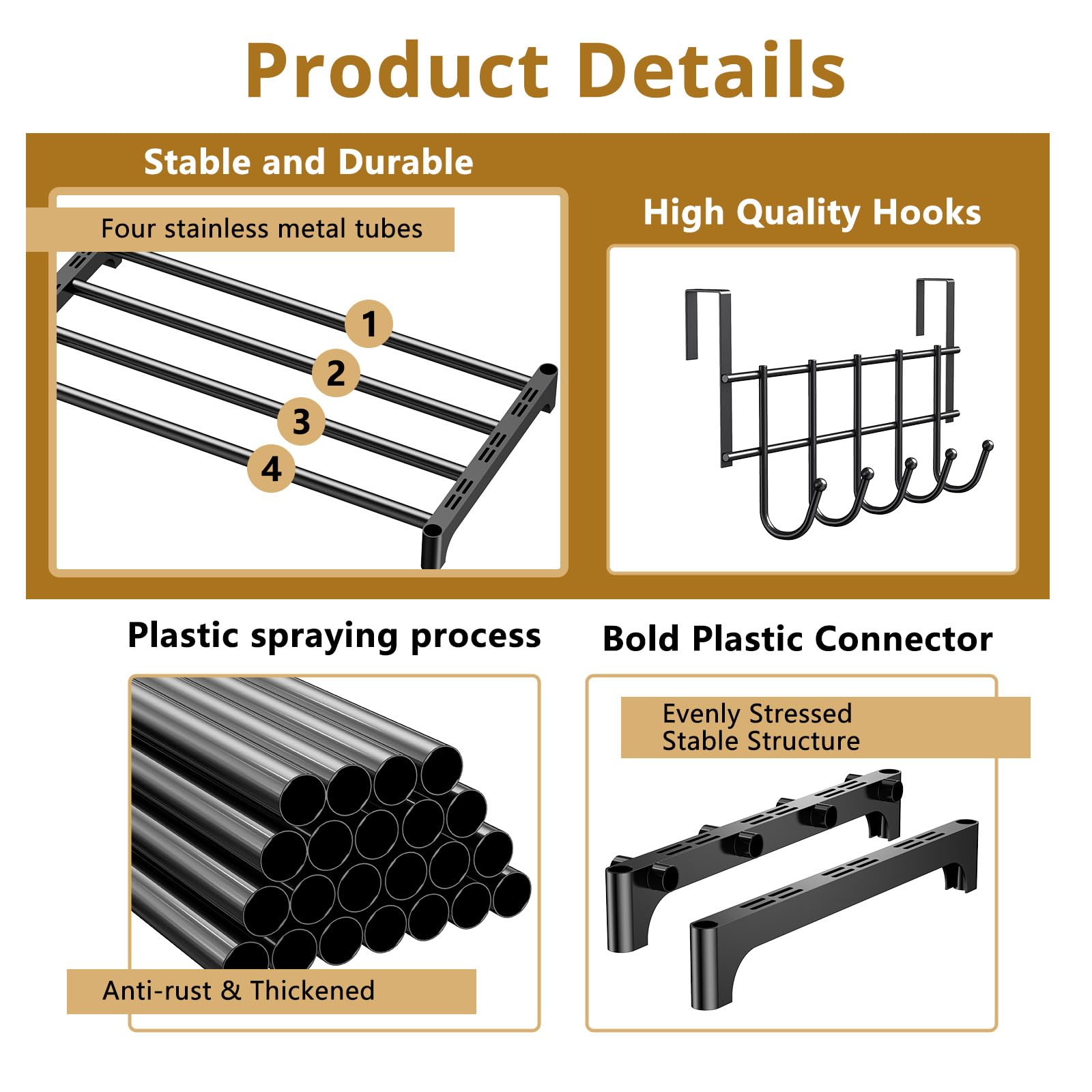 It makes it difficult to place large weights and bends, and the mid-rod support strengthens the overall structure, making this shoe storage rack more sturdy and stable, and has a longer service life.