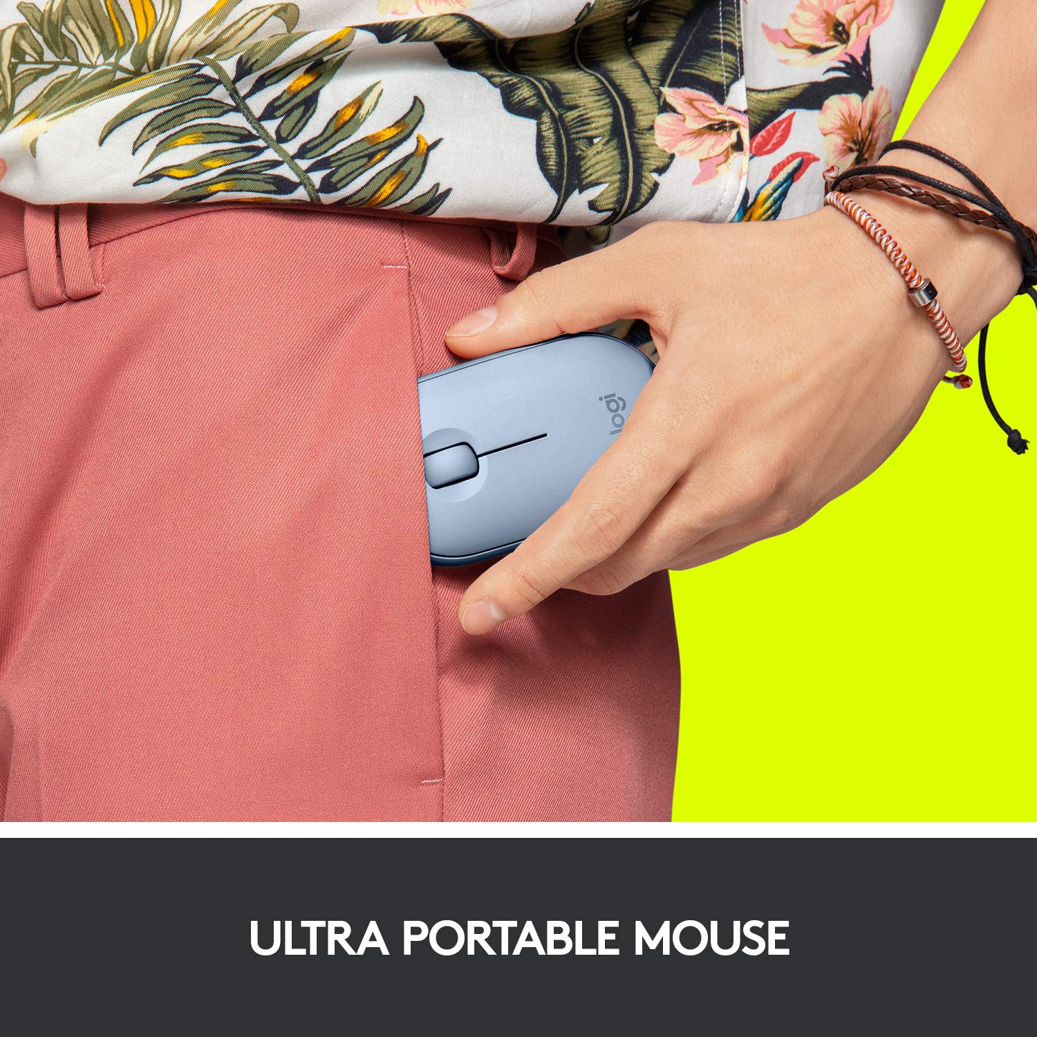 Own your space with Logitech pebble M350 a modern, slim, and silent portable mouse designed for your curated lifestyle. Make a statement with this slim mouse that can easily be scooped up and brought to the cafe or library. Silent clicking and scrolling means you can stay focused without disturbing those around you. And the Logitech pebble stays powered for 18-months* on a single AA battery so you don't have to worry about losing power. Connect the Logitech pebble the way you want via either Bluetooth or the USB receiver. The high-precision Optical tracking works on most surfaces. *Battery life may vary based on user and computing conditions.