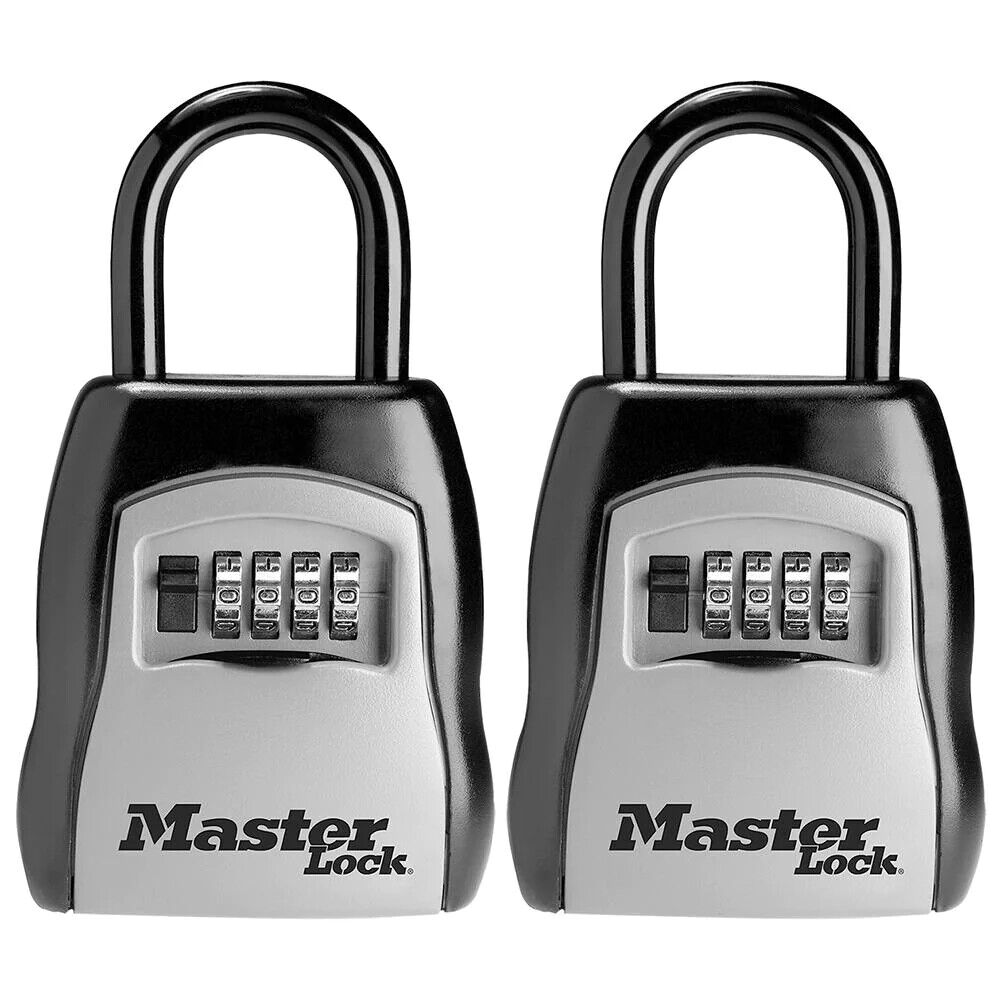 The Master Lock 5400D Lock Box, Resettable Combination Dials features a 3-1/4 in. (83 mm.) wide metal body for durability. Portable lock box design offers removable "over the knob" installation. Set your own four-digit combination for keyless convenience and increased security. Lock box includes a shutter door which protects combination dials from weather, dirt and grime; and molded body and vinyl coated shackle prevent scratching. Master Lock's Lifetime Guarantee provides peace of mind from a brand you can trust. Color: Black and Grey.