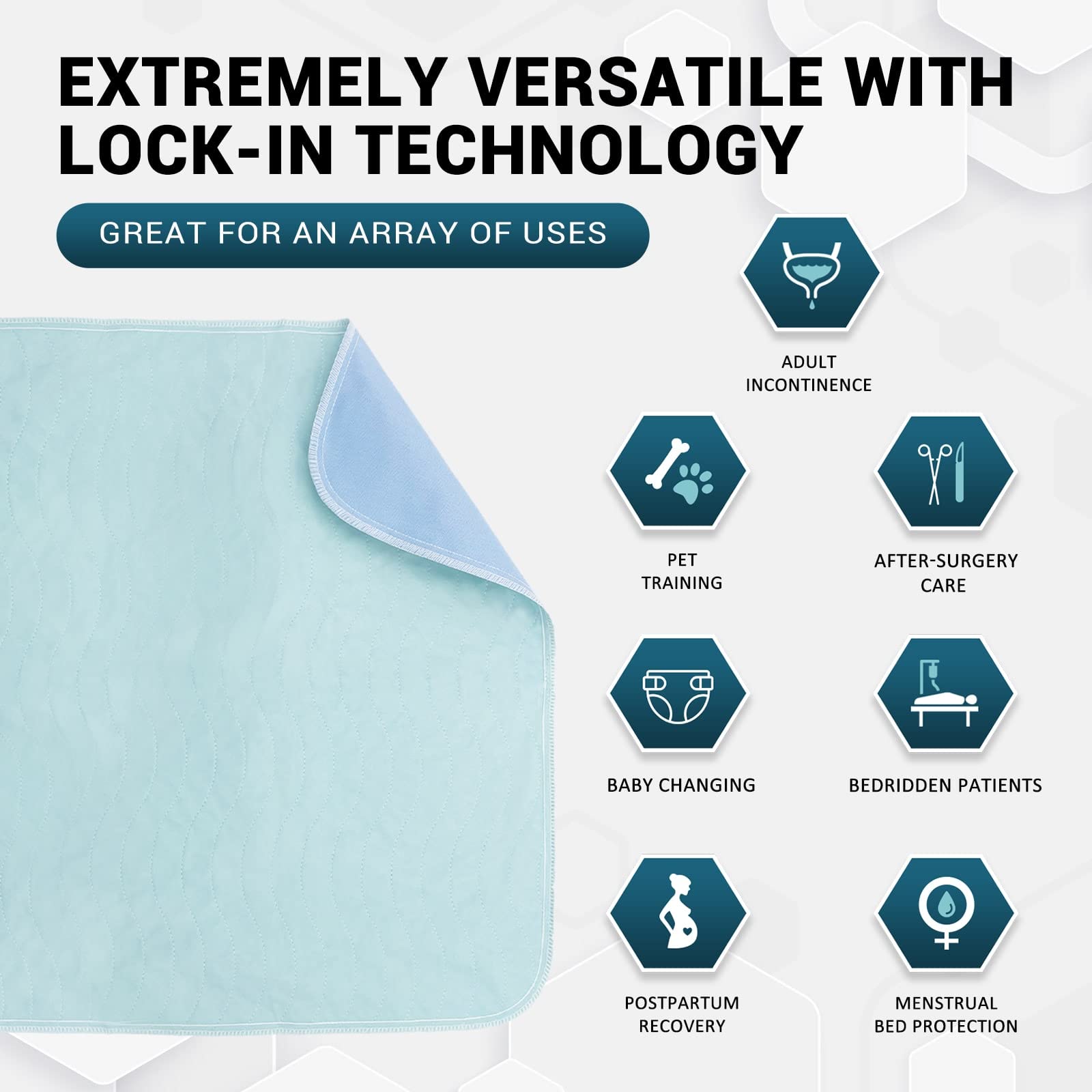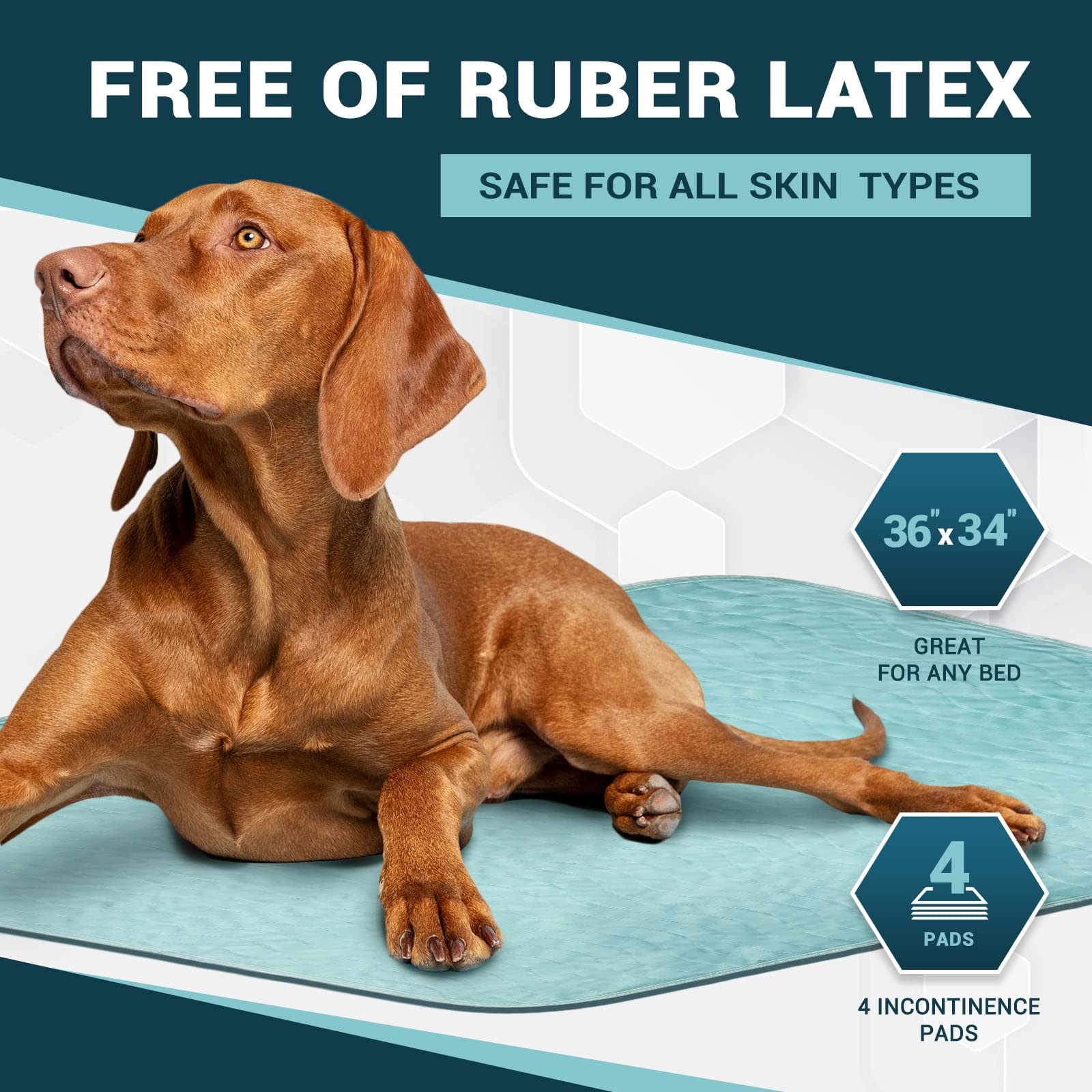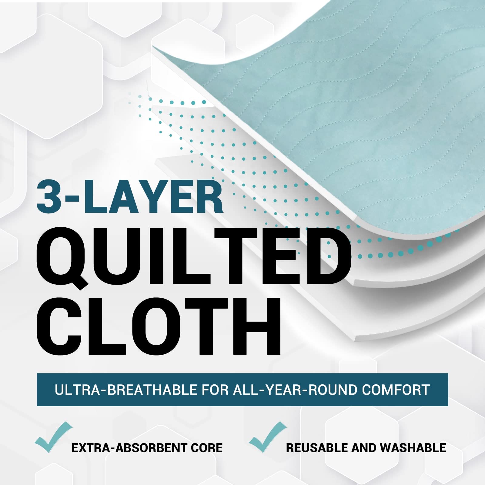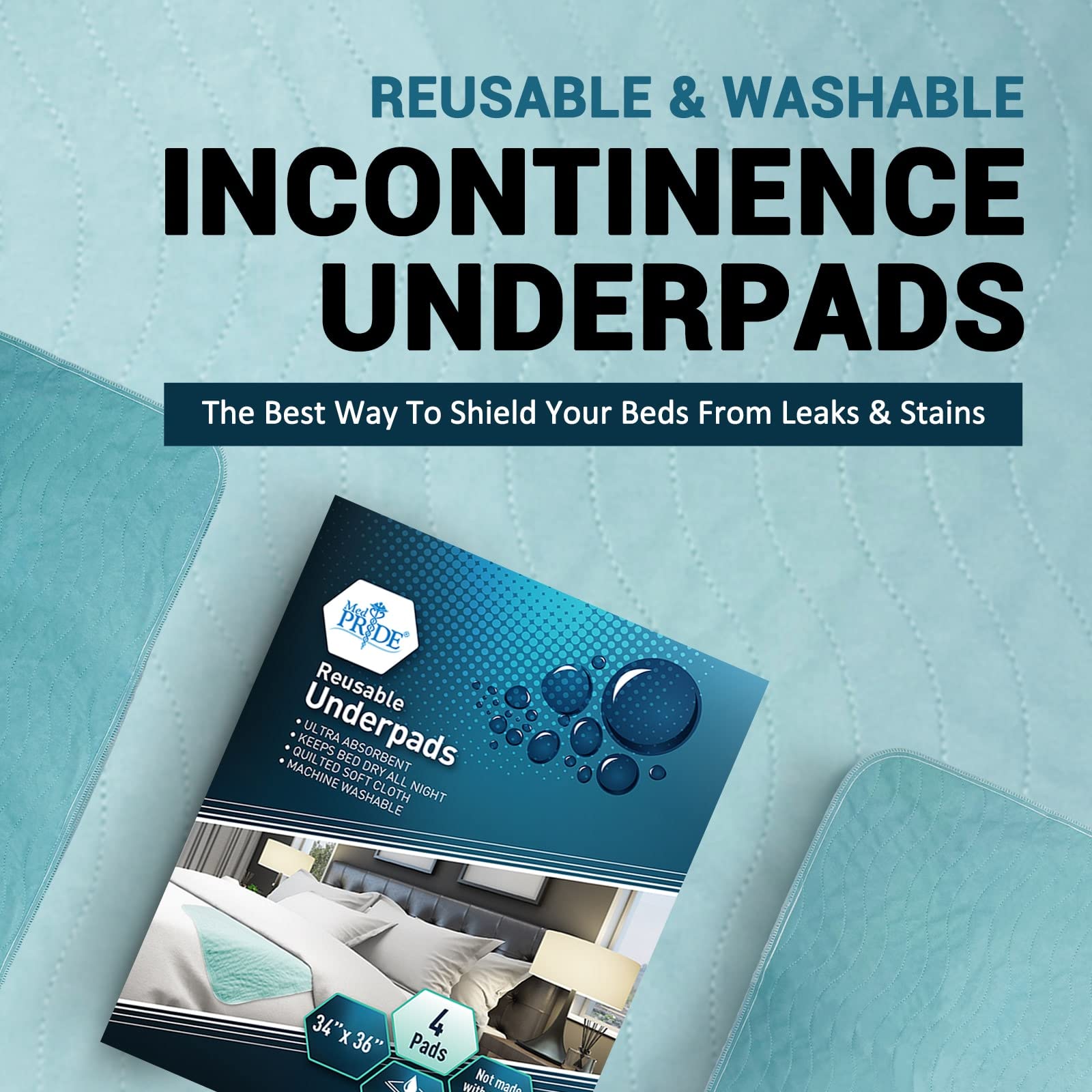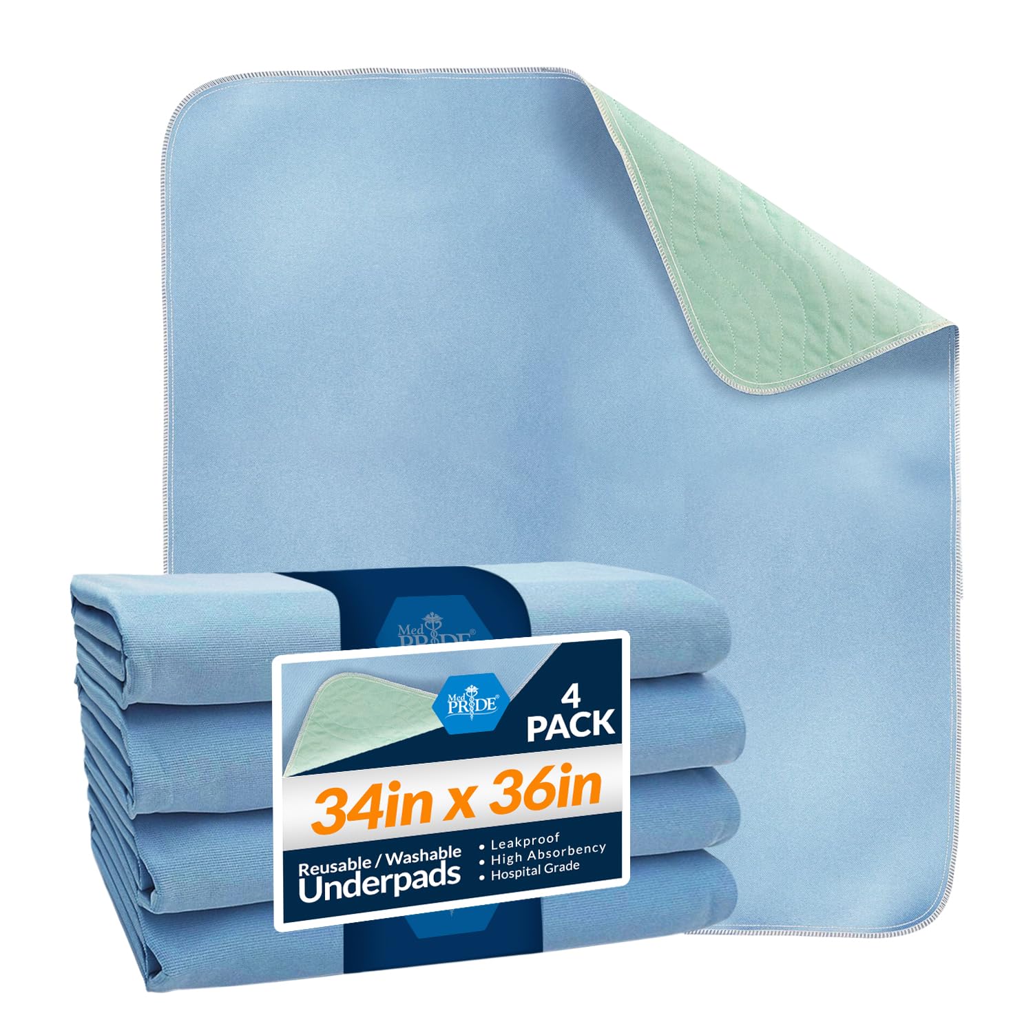 MEDPRIDE REUSABLE & WASHABLE INCONTINENCE UNDERPADS - THE BEST WAY TO SHIELD YOUR BEDS FROM LEAKS & STAINS 3-LAYER QUILTED CLOTH WITH LEAKPROOF BACKING Designed to catch any urine leaks and prevent them from making their way to your mattress, these extra-absorbent pee pads come with a waterproof, leakproof backing that creates the perfect barrier against leaks. No more pesky stains, ruined bedsheets and nasty odors. EXTRA-ABSORBENT CORE TO TRAP LEAKS & KEEP YOU DRY The super absorbent synthesis of these reusable adult bed pads can hold a big amount of liquids to keep you dry and comfortable all night long. Our quilted, gentle-to-the-skin bed liners are also ultra soft and completely noiseless for a peaceful night's sleep. THE GREEN CHOICE: REUSABLE AND MACHINE WASHABLE Created to take the hassle away from nighttime incontinence without burdening our planet (and your pocket), these bed pads are 100% machine washable. With reinforced seams and an allover excellent quality, they will come out looking as good as new! ULTRA-BREATHABLE FOR ALL-YEAR-ROUND COMFORT To provide the ideal environment for restful sleep in and out of your bed, the MedPride reusable underpads are ultra-breathable for a comfortable, sweat-free nighttime experience. Discreet and easy to use, they are perfect for every season, even the hottest summer days. EXTREMELY VERSATILE WITH LOCK-IN TECHNOLOGY, GREAT FOR AN ARRAY OF USES: - Adult Incontinence - Postpartum Recovery - After-Surgery Care - Baby Changing - Period / Menstrual Bed Protection - Bedridden Patients - Puppy & Dog Training VALUE PACK OF 4 INCONTINENCE PADS [36" x 34"] Each MedPride pack will equip you with 4 machine-washable underpads so you can always have a clean one ready to go. PROTECTED MATTRESSES, WORRY-FREE SLEEPING & EASY CLEANUP MADE POSSIBLE. ORDER YOURS TODAY!