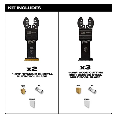 The MILWAUKEE Universal Fit OPEN-LOK 5-Piece Oscillating Multi-Tool Set provides users with an assortment of blades for use in wood and nails, wood, drywall, and PVC. The Titanium Enhanced Bi-Metal blade uses premium high-speed steel and lasts up to 15X longer than standard high carbon steel (HCS) blades. The bi-metal multi-tool blade is ideal for smooth cuts in wood with nails, PVC, and drywall. The HCS Wood Blades are ideal for fast cuts in wood, PVC, drywall, and other soft materials. This oscillating tool blade variety pack is designed and made with global materials.