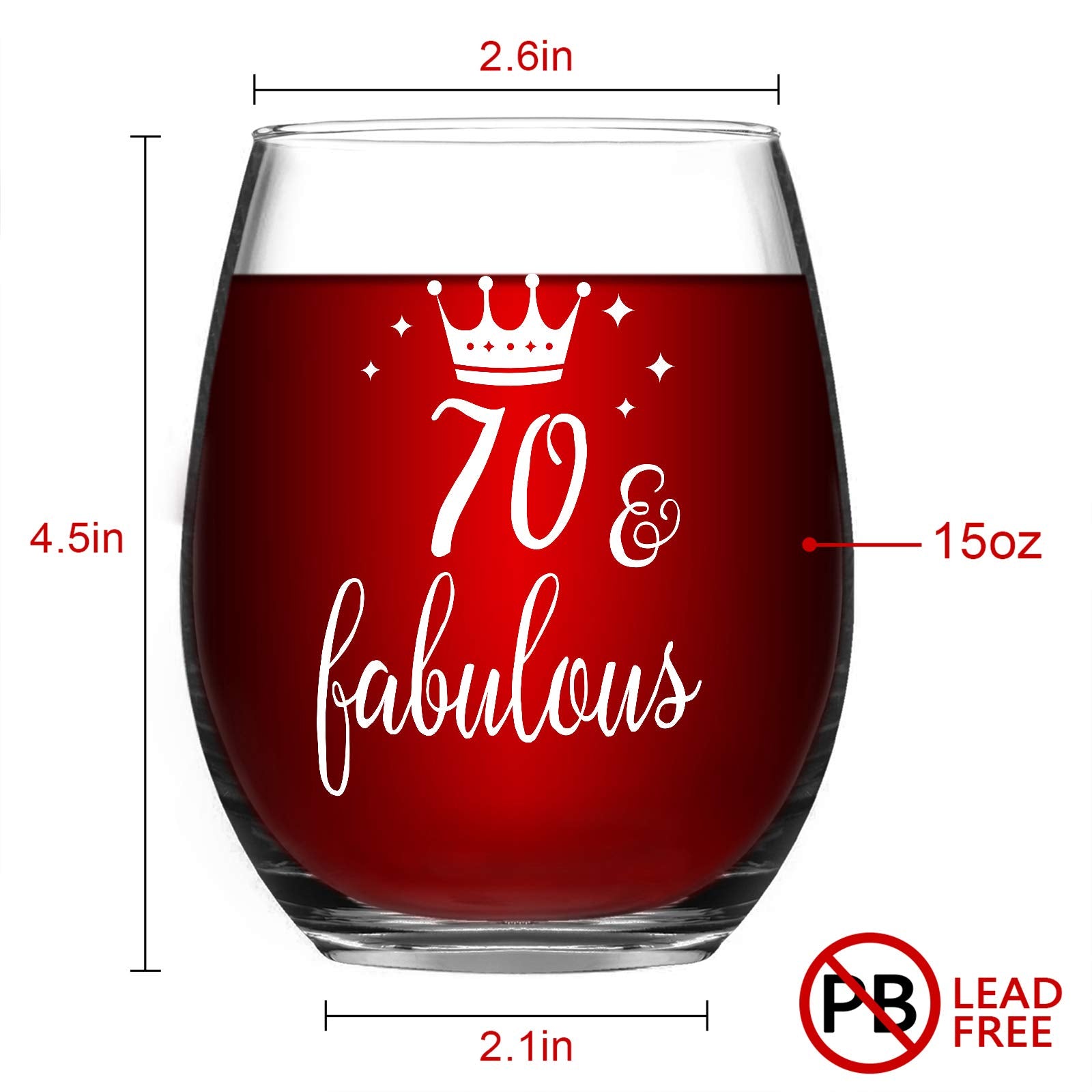 Our 70th birthday wine glass is 15Oz and suitable for any beverages - coffee, cola, water, milk, juice, wine, tea and more drinks.