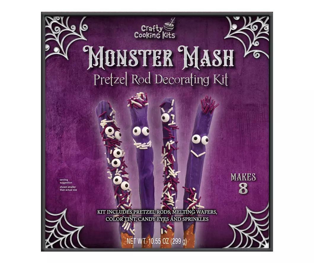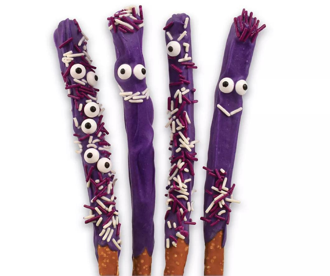 Usher in the spookiest season with these festive pretzel snacks that look like monsters. Tasty pretzel rods come with decorative eyeball candies and frosting for an unforgettable Halloween treat.