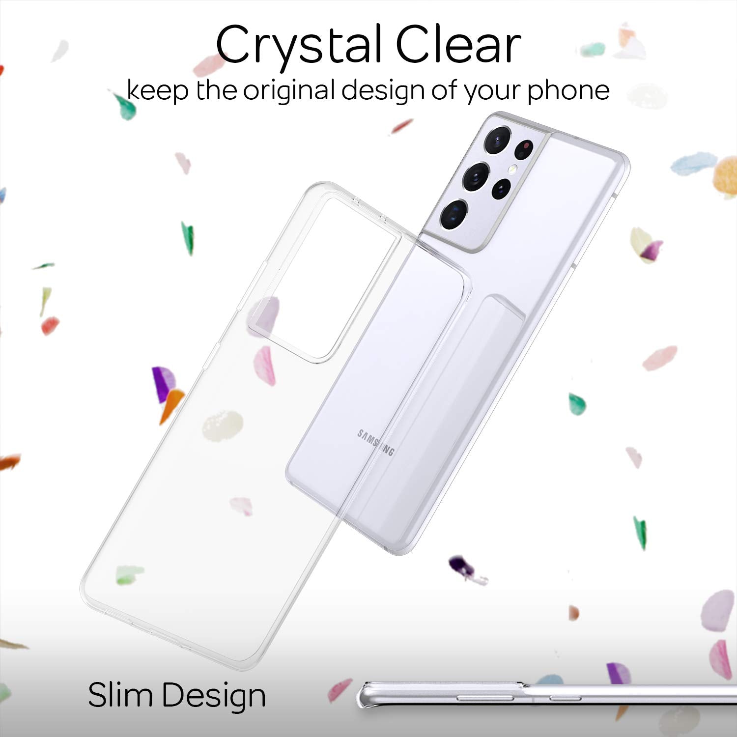 NALIA Clear Cover compatible with Samsung Galaxy S21 Ultra Case, Transparent Protective See Through Silicone Bumper Slim Mobile Phone Coverage, Ultra-Thin Shockproof Crystal Gel Rugged Back Phonecase