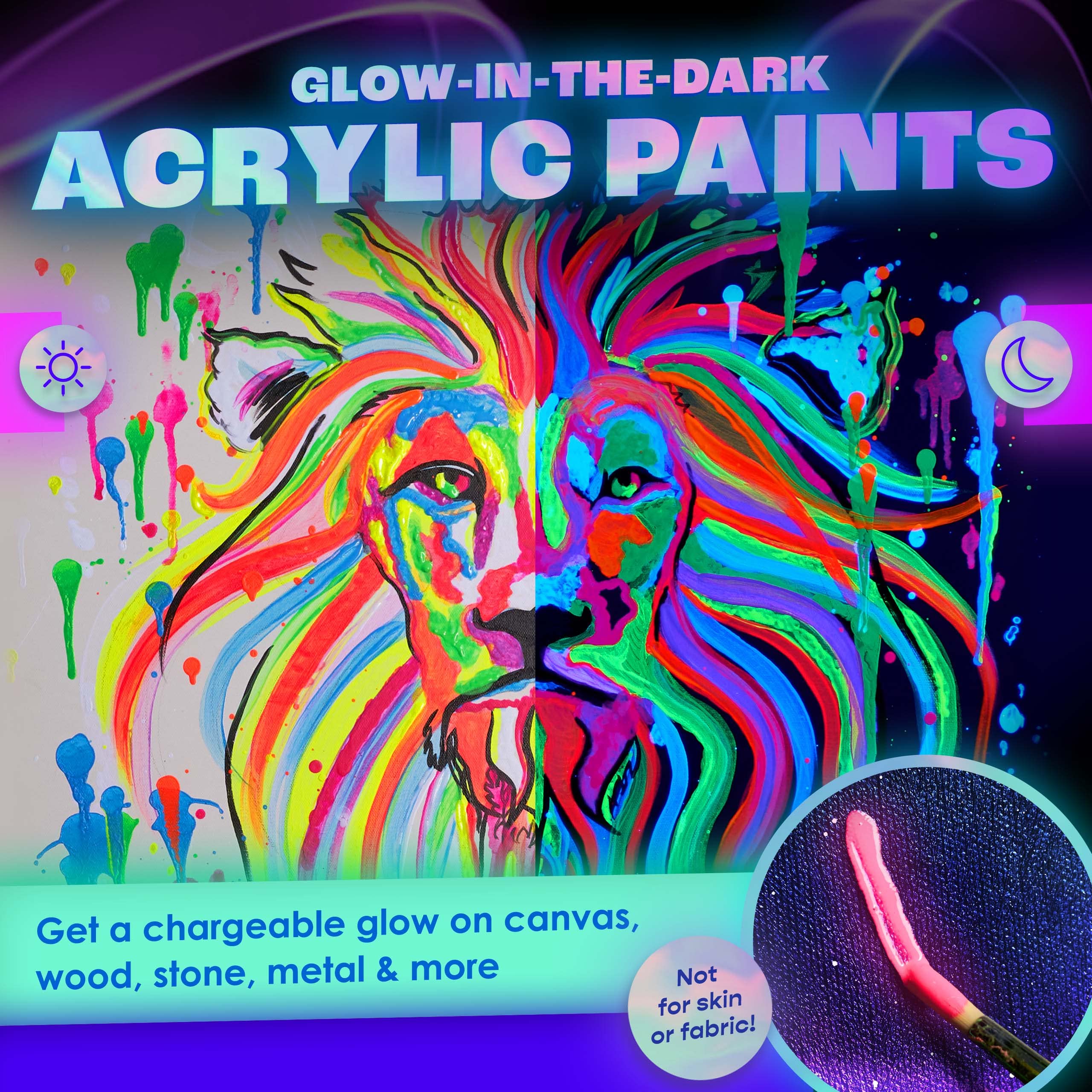 Easter Basket Stuffers Gifts for Kids Easter Egg Painting Decoration neon nights Glow in the Dark Paints Letting You Show Your Radiant Personality, Anytime, Anywhere Have you been looking for ways to make your art stand out more from your previous pieces? Do you constantly look to add more personality and uniqueness to your art? Are you tired of using low-quality glow paints that look dim and fade quickly even when fully charged? If so, then neon nights luminescent glow in the dark paints are just what youve been looking for! Each of these glowing neon paints have been hand crafted in Germany and are designed to give many of your art projects a brilliant and long-lasting glow when its dark out, as well as a stunning neon effect in the daylight. Every glowing paint we offer in this set has been rigorously tested to ensure that they meet our high-quality standards. This includes making sure that each color glows vibrantly, mixes well with one another, applies perfectly to most surfaces and canvases, and other important details we look for. Eight Beautifully Radiant Colors Every set of our self-luminous acrylic paints comes with eight bright and vivid colors, such as red, blue, green, yellow, pink, white, orange, and purple. Each glow paint comes in 20 ml (.7 fl oz.) bottles and once fully charged in light after a few hours, they are guaranteed to glow brightly for the remainder of the night.Instructions for use: