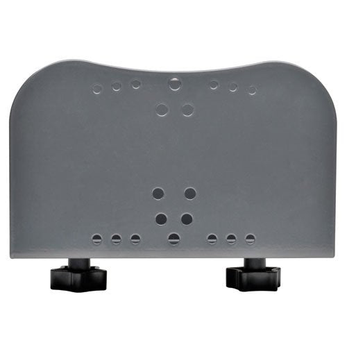 Keep your workspace organized and your CPU secure with the Tripp Lite Adjustable Computer Mount. Designed to accommodate CPU displays between 4-6.25 inches wide, this open-frame mount is made from durable steel for long-lasting support. The wall-mountable design helps save valuable desk space, while the adjustable frame ensures a snug fit for a variety of devices. Backed by a 5-year warranty, this mount provides peace of mind and reliable performance. Ideal for both home and office setups, the sleek gray finish complements any environment.