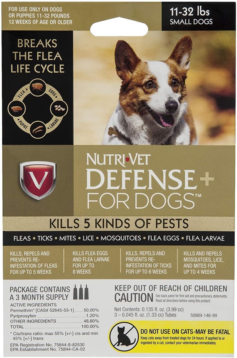 Nutri-Vet Defense Plus Dog Flea and Tick Prevention contains two active ingredients to protect your dog and your home from nasty fleas and ticks. Among the best flea and tick control for dogs, this convenient and easy to apply topical dog flea and tick prevention also fights mosquitoes, lice and mites to keep your dog safe and itch-free. This dog flea and tick prevention kills five different kinds of pest on dogs. Use the flea and tick treatment for dogs on large dogs 12 weeks of age or older. Protect your dog from flea and tick infestation with this dog flea and tick prevention!