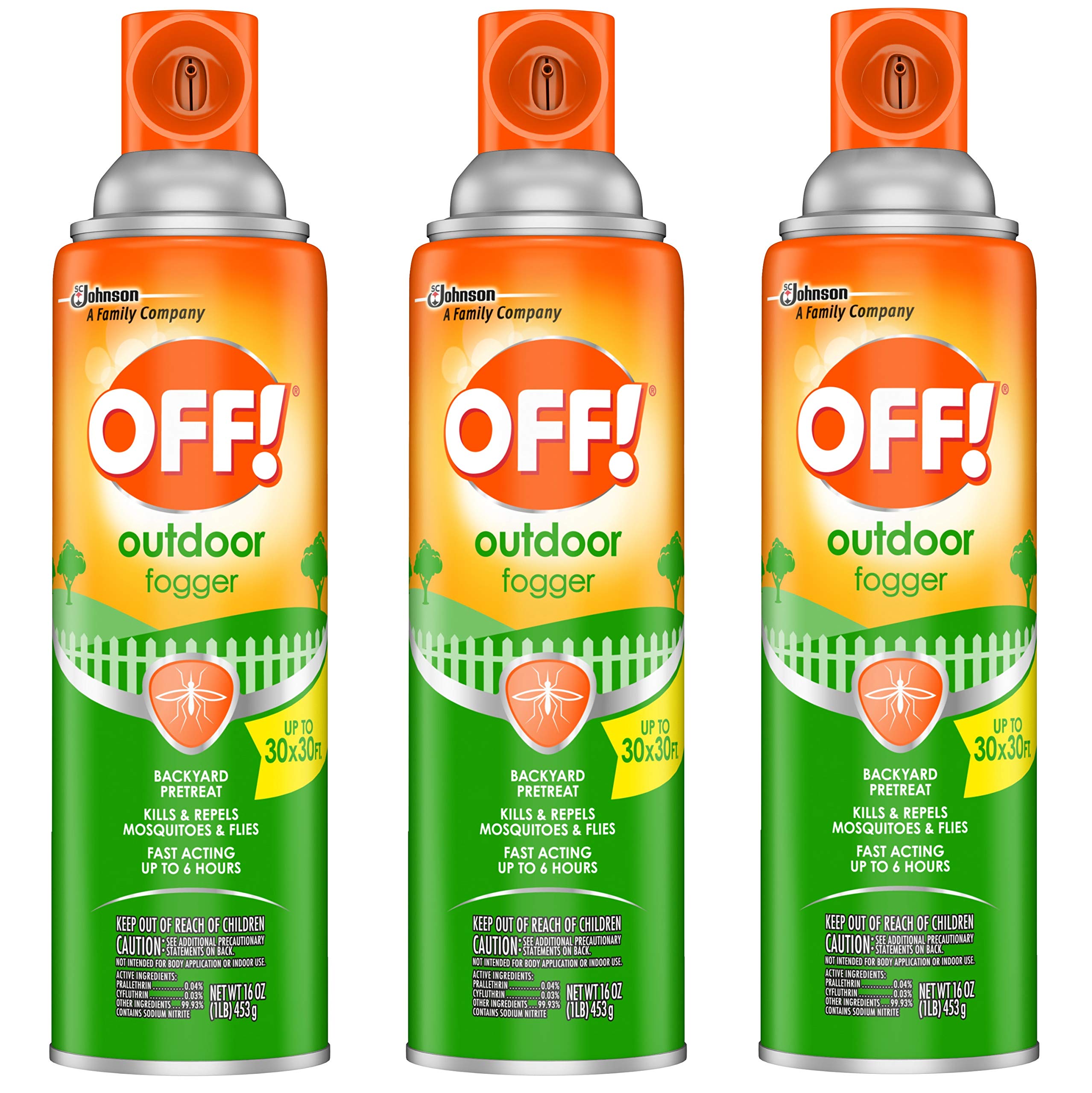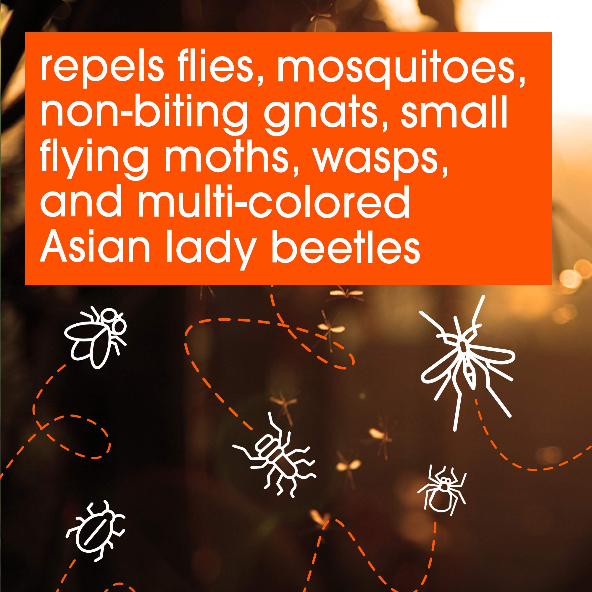 OFF! Outdoor Insect Fogger repels insects outside your home for up to 6 hours. It works effectively against flies, mosquitoes, non-biting gnats, small flying moths, wasps, and multi-colored Asian lady beetles. Take back your outdoor space, and keep living life your way. Strong enough for outdoor spaces, the mosquito repellent fogger covers an area as large as (900 Square Feet). Keep out of reach of children and pets. See the label for other precautions and usage directions.