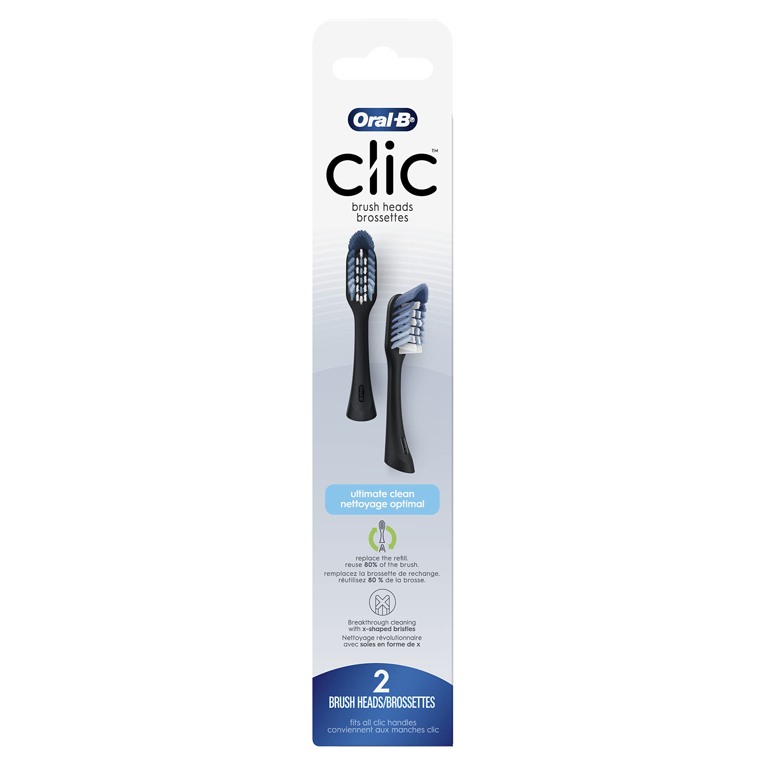 Oral-B Clic Toothbrush Ultimate Clean Replacement Brush Heads, Black, 2 Count