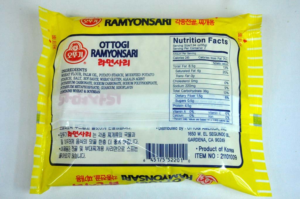 Asian style ramen noodles be fried by Palm oil. Ottogi ramyunsari can be added to every soup...