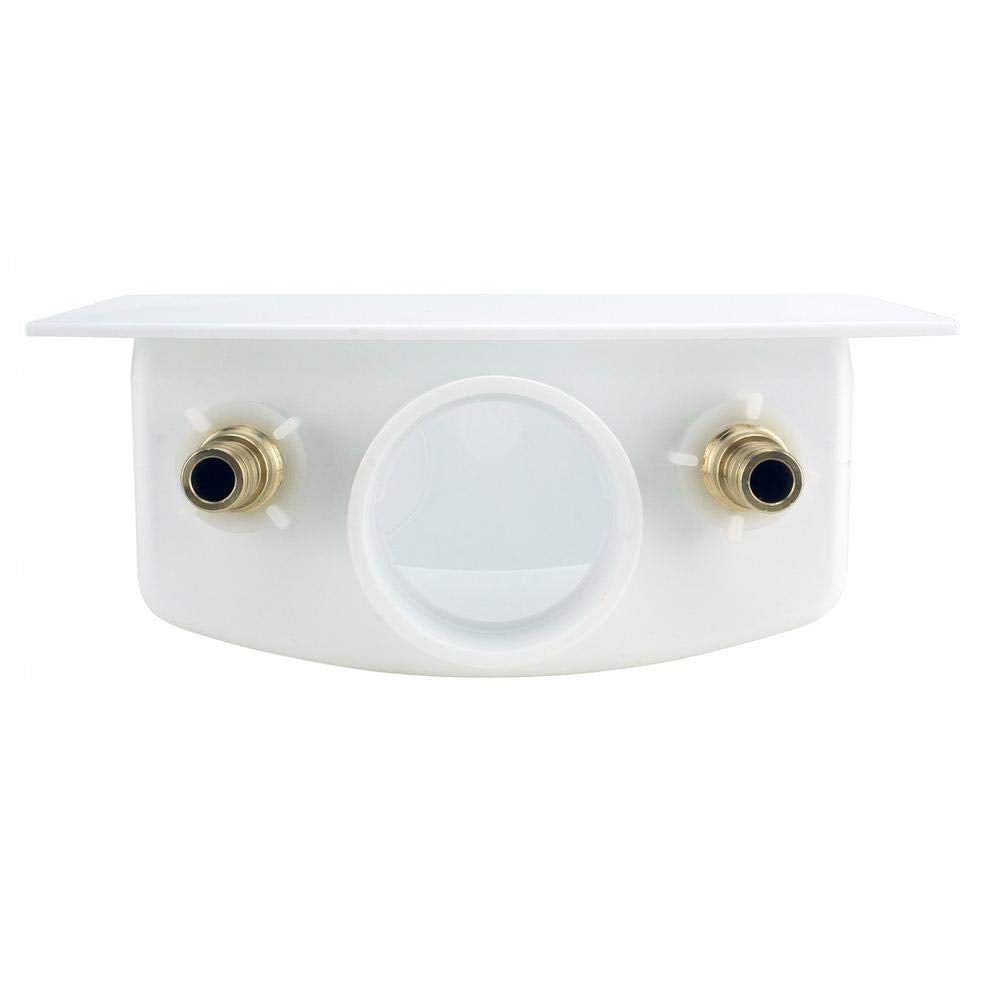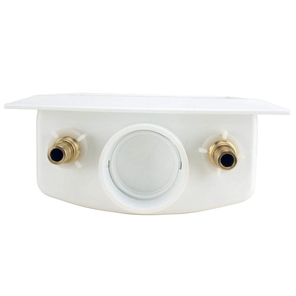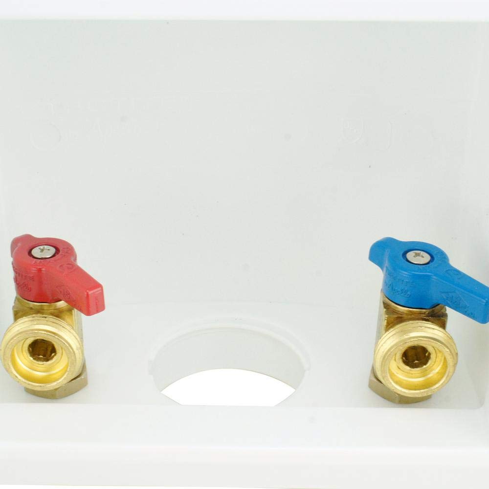 The Apollo Expansion PEX Washing Machine Outlet Box includes 1/2 in. Brass PEX-A barb washing machine valves and is simple to install. It provides flow control through an anti-stick and smooth operating quarter-turn handle. Apollo Expansion PEX barb fittings are a key component of the most economical potable water piping systems. Apollo Expansion PEX barb connections must be secured into place Apollo Expansion PEX sleeves or comparable expansion-type sleeve or ring (all sold separately). The Apollo Expansion PEX system is a comprehensive piping system comprised of lead free brass fittings, poly alloy fittings, manifolds, valves, fasteners, tools and tubing designed for implementation in water delivery systems, simple or complex. A cold-expansion tool (sold separately) is required for installation.; ; Brand Name: Apollo Valve Inlet Diameter: 1/2 in. Appliance Type: Washing Machine Product Type: Outlet Box Depth: 3.75 in. Height: 10.13 in. Inlet Pipe Material: PEX Width: 8.75 in. Valve Outlet Diameter: 3/4 in. Maximum Pressure: 200 psi Maximum Working Temperature: 200 deg F Material: Brass Connection Type: Barb