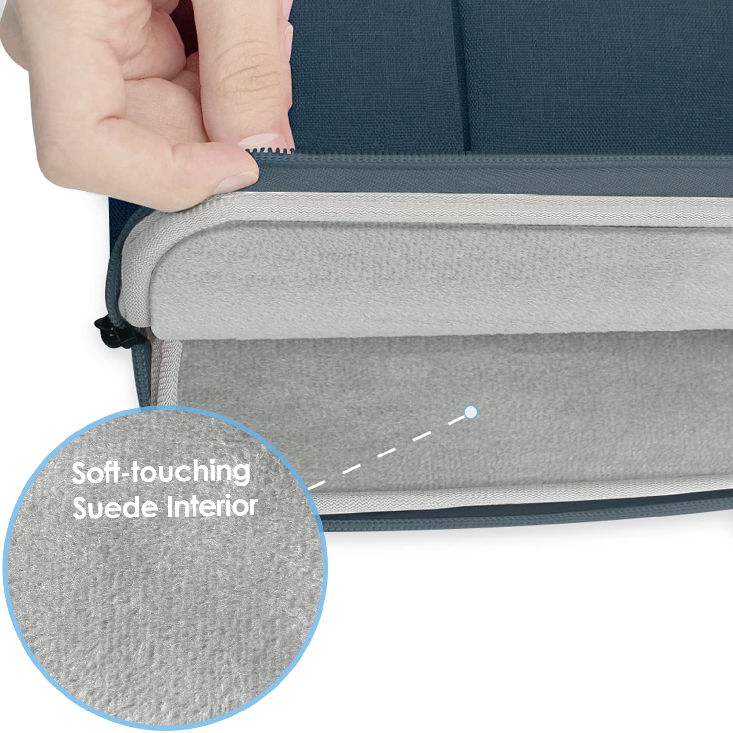Made of premium durable canvas, soft-touch suede interior, smooth double zippers for your laptop, with extra pocket in front for mobile phone, mouse, office tools, and so on.