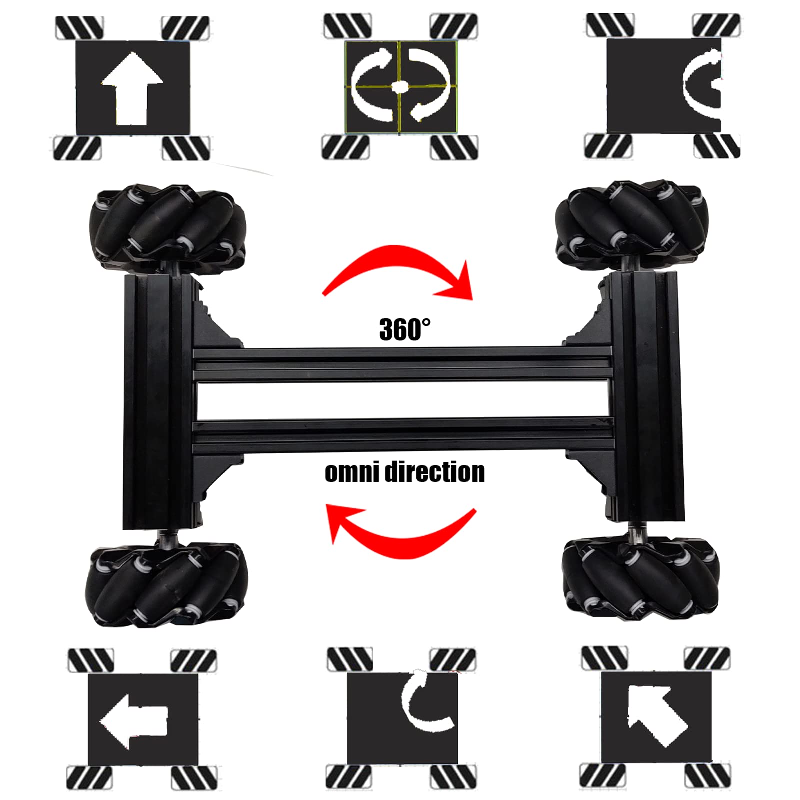 The mcnamu wheel used in this car has compact structure and flexible movement. It is a very successful omni-directional wheel. Four of these new wheels are combined, which can realize the omni-directional movement function more flexibly and conveniently. You can also use this robot chassis to achieve functions, which can be used for teaching research, robot competitions, etc.