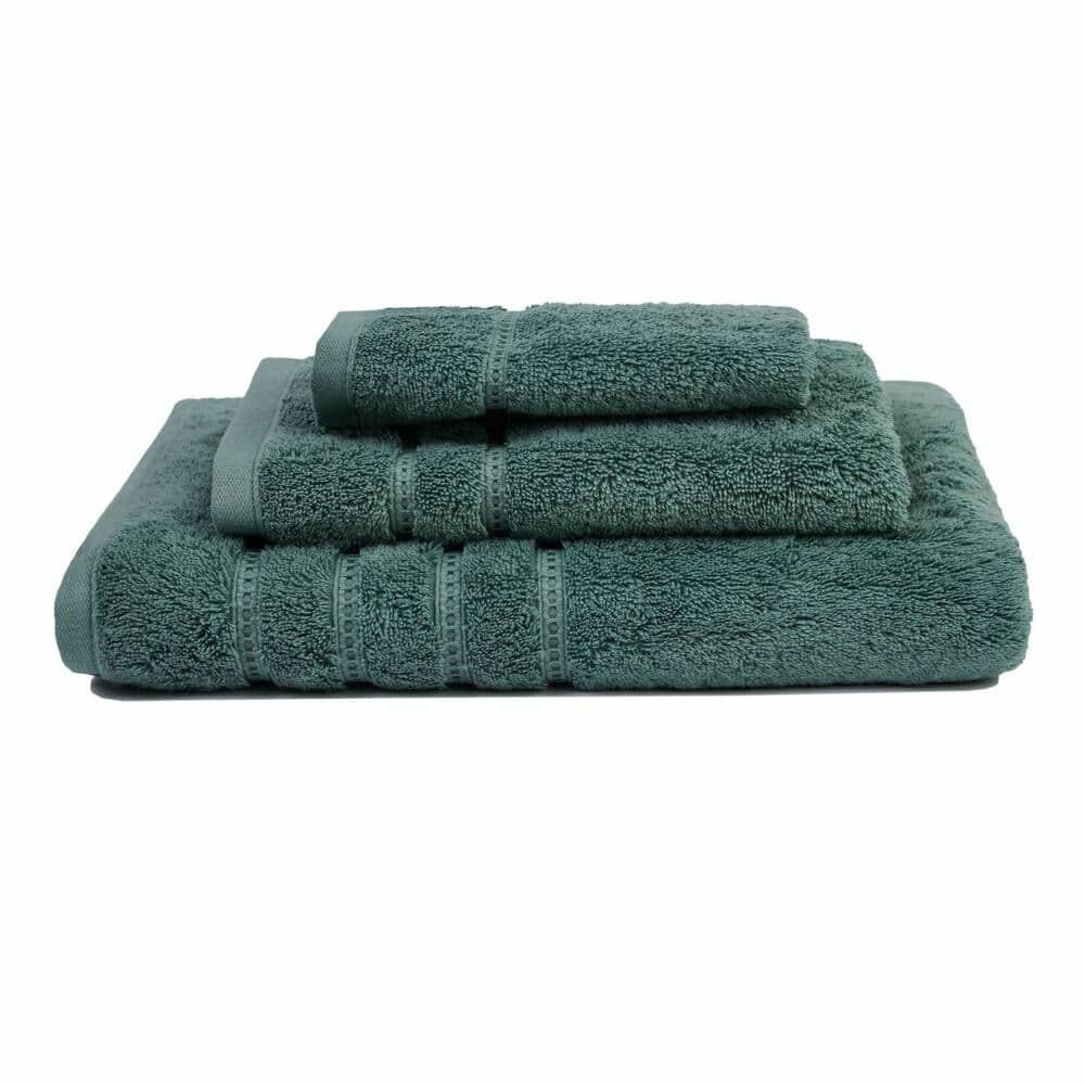 Luxurious Turkish cotton towels with a resort like feel. Bath set includes an oversized bath 30 in. x 54 in. hand towel of 16 in. x 28 in. and generous face washer 13 in. x 13 in. Fashion color (Seafoam ) for any bathroom will enhance your senses foe a resort like experience.