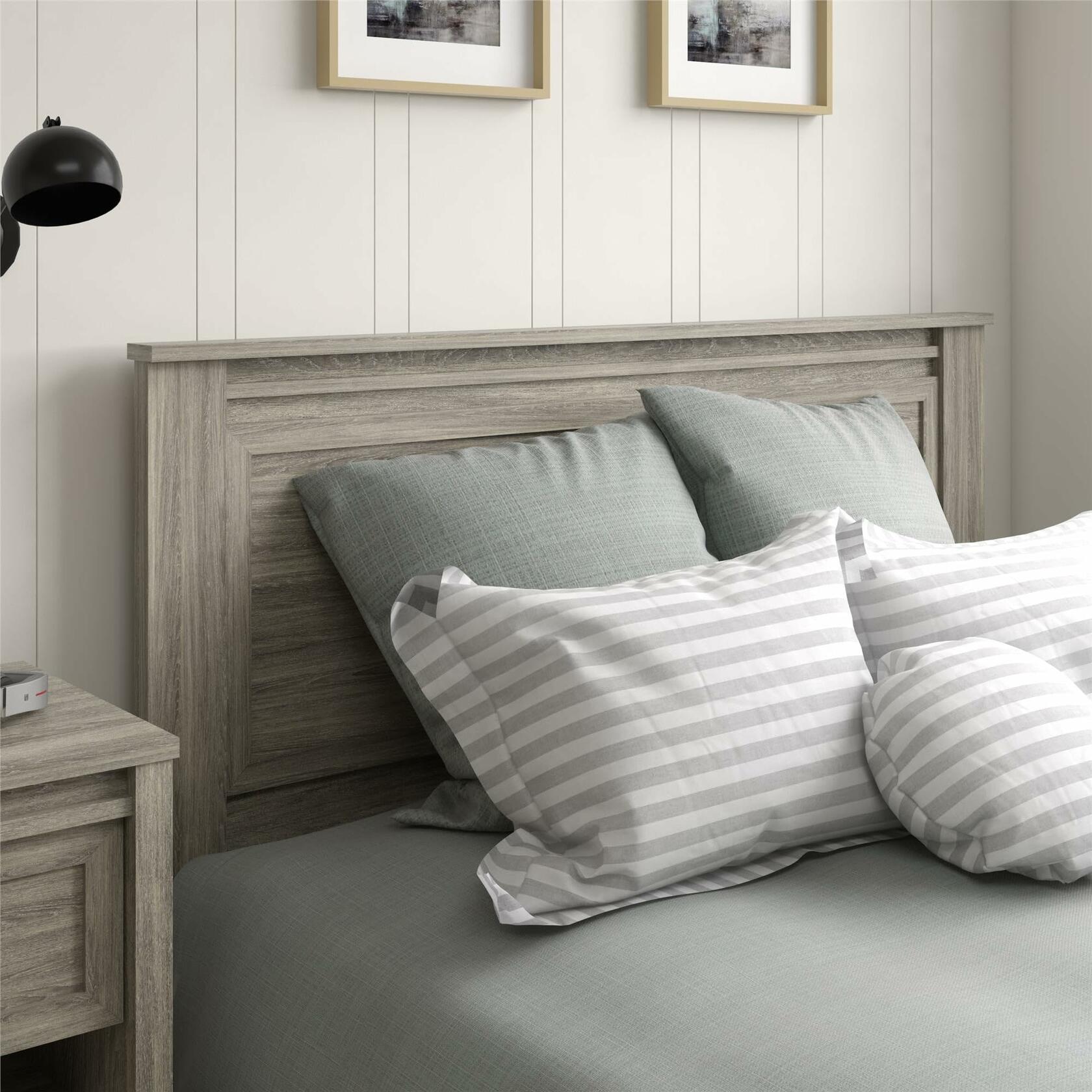 Finish your bedroom or guest room with the Ameriwood Home Rolling Ridge Full Headboard. The beautiful gray oak woodgrain finish on the laminated MDF and particleboard can easily fit into your existing dcor. The Headboard pairs with the Rolling Ridge Full Platform Bed (sold separately) to complete the look of your bedroom. The predrilled holes makes it simple to attach the Headboard to your bedframe. The Headboard requires assembly upon opening. Two adults are recommended to assemble. Once assembled, the Headboard measures to be 40.43H x 58.66W x 2.76D. Update your bedroom or guest room with the Ameriwood Home Rolling Ridge Full Headboard Made of laminated MDF and particleboard, the gray oak woodgrain finish gives an updated look at a reasonable price The predrilled holes makes it simple to attach to most full size bedframes (sold separately) Complete your entire bedroom with the rest of the Rolling Ridge collection (each sold separately) The Headboard requires assembly upon opening. Two adults are recommended to assemble. Assembled dimensions: 40.43H x 58.66W x 2.76D SKU: 6475344EBL Product Dimensions: 2.76 x 40.43 x 58.66 in. Shipping Dimensions: 64.19 x 3.25 x 18.19 in. Unit Weight : 48 lbs Carton Weight : 48 lbs Documents: Assembly Manual Functional Drawings Assembly Manual Functional Drawings