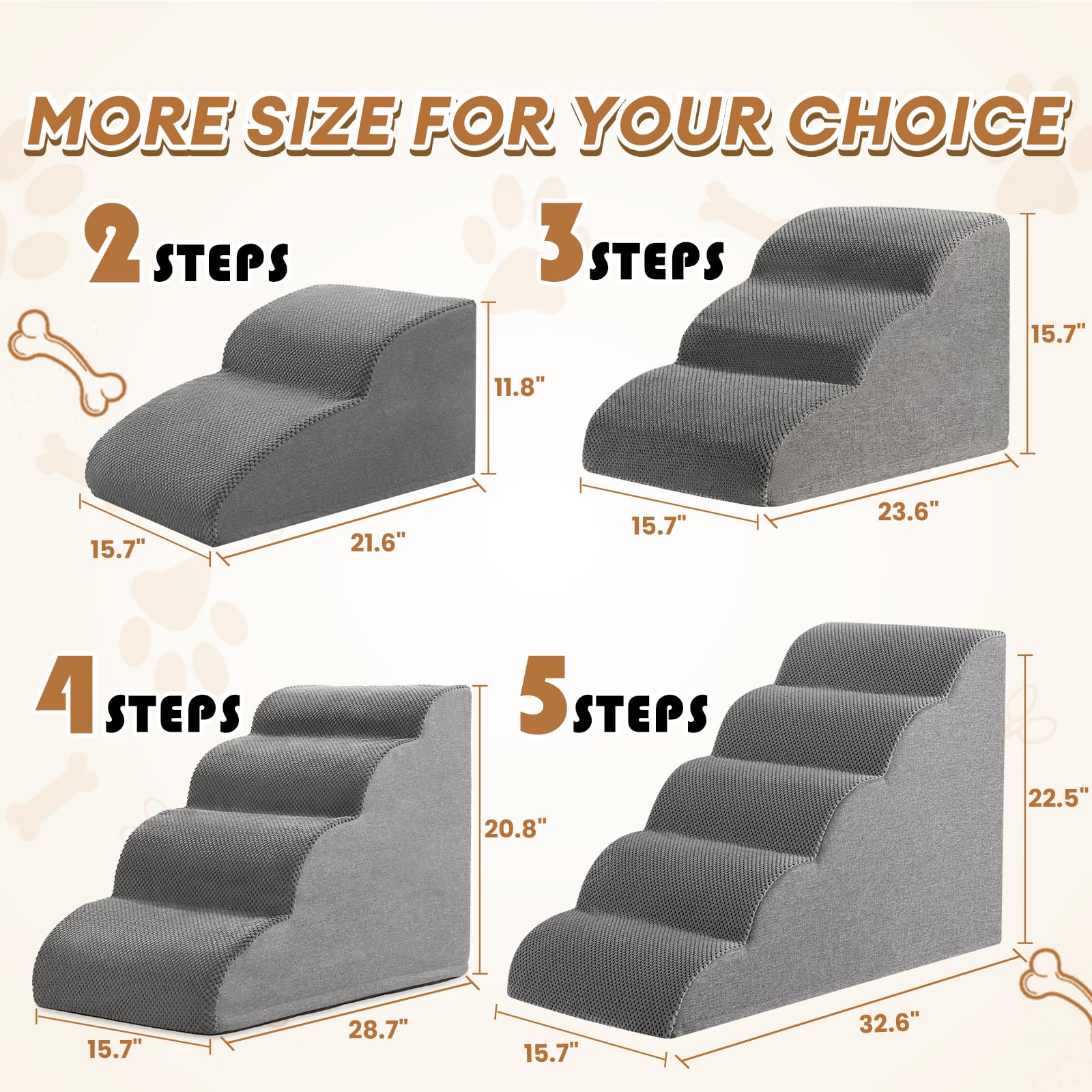 dog stairs dog stairs to bed dog stairs for high beds dog stairs for small dogs stairs for dogs to get on bed dog stairs for large dogs dog stairs for couch 4 step dog stairs dog ramp dog ramps for small dogs dog ramp for bed ramp for dogs to get on bed pet stairsPlease note that due to trimming and vacuum compression, the sponge may take a minimum of 48 hours to fully rebound, and there may be variations in size Comfortable Pet Steps: Elevate your pet's comfort with our high-density dog stairs. Crafted in a rich coffee hue, the 2 steps dog stairs for dogs (15.7*21.6*11.8 inches)are designed with four gradual steps that make it easier for your small dog or furry friend to access higher surfaces like sofas and beds Pet-Friendly Design: Our pet stairs are not only functional but also pet-safe. Covered in a durable linen-like fabric with a unique corn kernel texture, these stairs are not only scratch-resistant but also offer a cozy surface for your furry pals to step on. Say goodbye to scratched furniture and discomfort Sturdy and Easy to Clean: The dog ramp dirt-resistant, making cleanup a breeze. The sturdy build ensures they withstand your pet's active lifestyle, providing a reliable solution for helping them reach their favorite spots without leaving a trail behind. Plus, the felted roller cap included collects pet hair, keeping your home clean Suitable for All Pet Sizes: From small dogs to cats and everything in between, our pet steps for small dogs are designed to cater to a range of pets. The thoughtful design ensures that even your smaller furry companions can access their favorite places with ease. These cat dog stairs offer a safe and comfortable solution for your furry companions