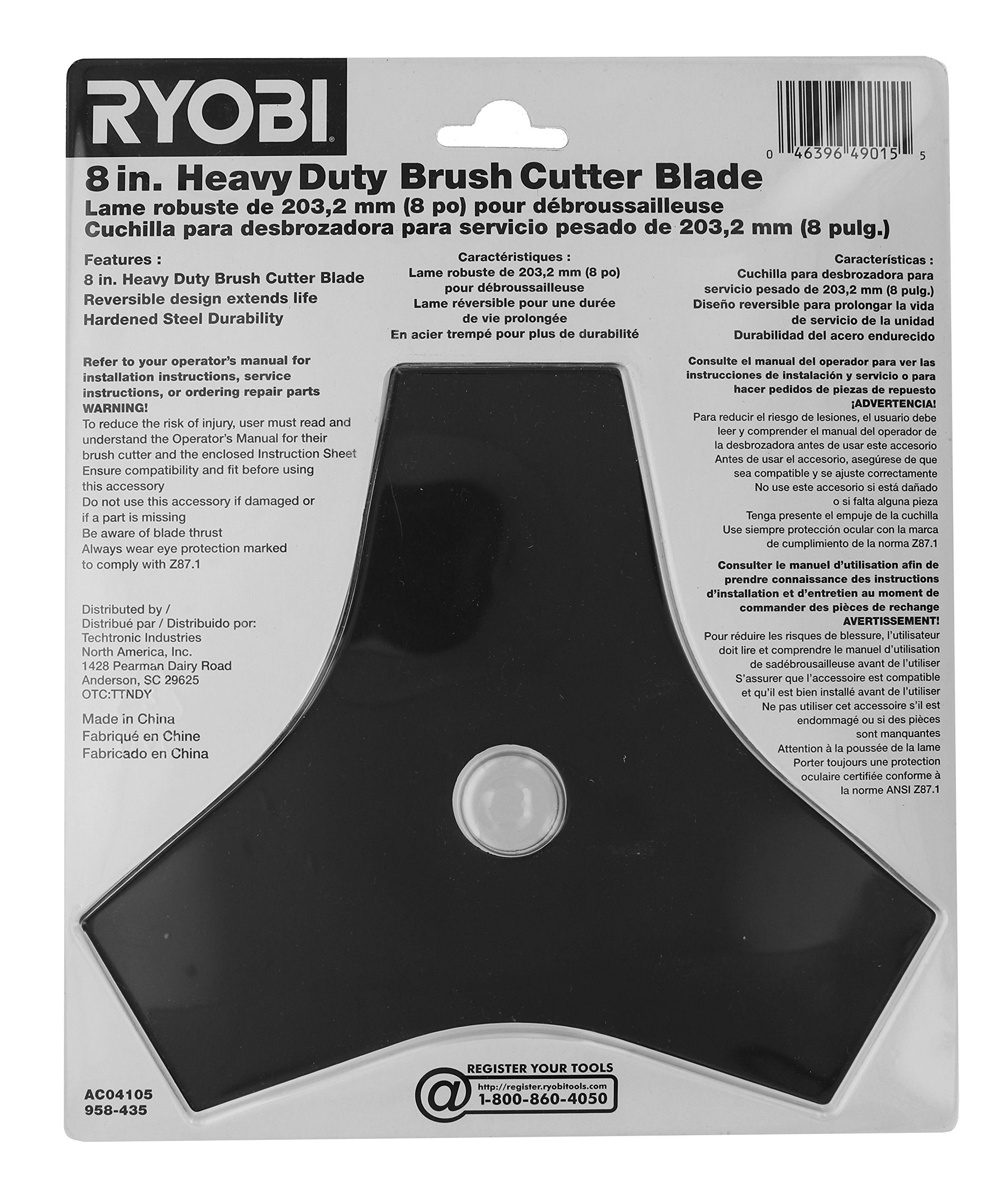 If you want to keep your lawn, garden, or patio cleared of invasive plant species, then look no further than the Ryobi AC04105. This is a hard steel, three-headed blade that will be able to tear through thick weeds with ease. Plug it into your Ryobi Expand-It trimming attachment head and youll be ready to work. The steel material making up this powerful cutting blade gives it a long lifetime on its own. Combine that with the fact that the blade is reversible, and youll be working twice as long as you would with normal, non-reversible blades. Whether youre a professional landscaper or a diy homemaker, youll want to keep Ryobi in mind for your outdoor applications.