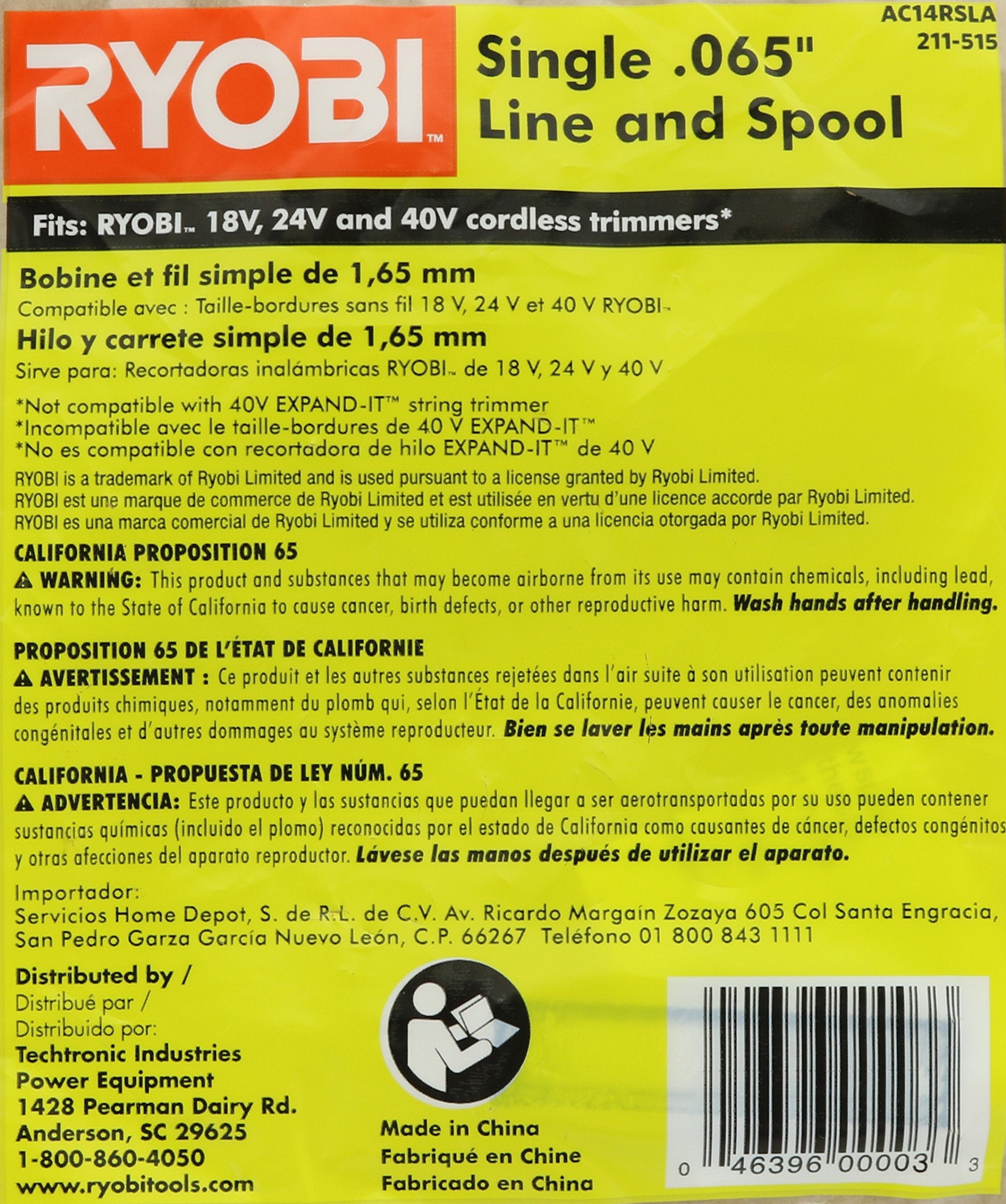 Say goodbye to winding up strimmer line by yourself. This Ryobi .065 Line and Spool will help you save time when working on your lawn or garden. Keep your grass edges looking sharp and reduce weeds to keep your lawn and patio beautiful. Get back to work quickly by snapping it into your favorite Ryobi cordless weed whacker. The UV protected trimmer line ensures safety and longevity while working out in the broiling sun. This is the optimal solution