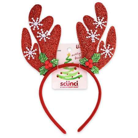 Introducing the Scunci Merry + Bright Reindeer Antler Headband! Get ready to spread holiday cheer and embrace the festive spirit with this adorable and whimsical accessory. Whether you re attending a holiday party participating in a Christmas-themed event or simply want to add a touch of merriment to your day this headband is the perfect choice. Crafted with care and attention to detail the Scunci Merry + Bright Reindeer Antler Headband features a single beautifully designed reindeer antler adorned with enchanting accents. The antler is expertly shaped and embellished with a sparkly touch instantly capturing the magic of the holiday season. Comfort is key and we ve made sure that wearing this headband is a delightful experience. The antler is securely attached to a flexible and lightweight headband ensuring a comfortable fit for both adults and children. Whether you re wearing it for a short time or throughout the day you can embrace the holiday festivities without any discomfort. This headband is incredibly versatile allowing you to pair it with a variety of outfits and hairstyles. Wear it as a standout accessory to complement your holiday ensemble or add a touch of whimsy to your everyday look. It s also a fantastic addition to a Christmas costume or a fun photo booth prop for festive gatherings and events.