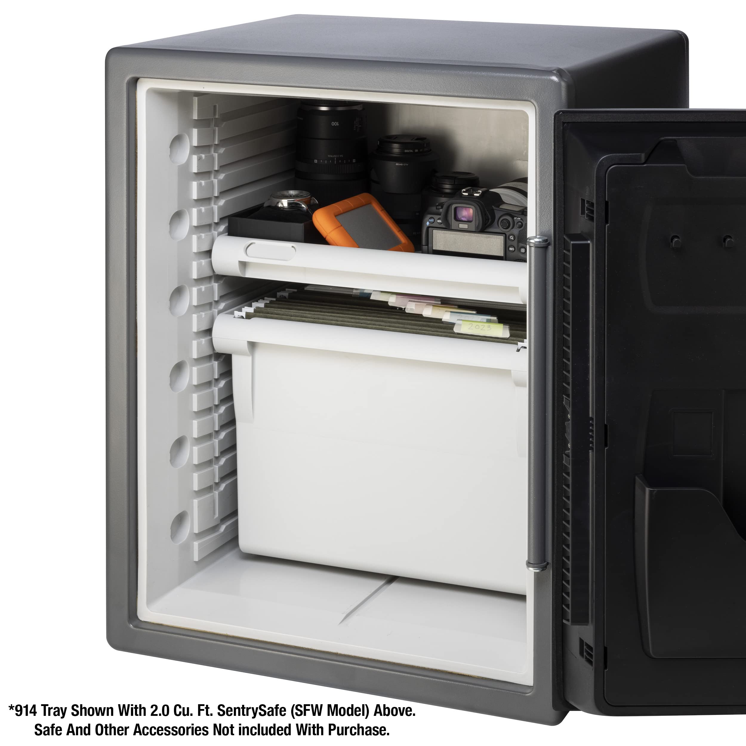 Product Description Keep your important documents and valuables organized while keeping them safe with this SentrySafe Tray Insert. Adjustable to any height in your SentrySafe 2.0 cu. ft. firepooof safe this shelf helps you arrange your items so they are easy to find and not damaged during storage. From the Manufacturer Keep your important documents and valuables organized while keeping them safe with this SentrySafe Tray Insert. Adjustable to any height in your SentrySafe 2.0 cu. ft. fire-resistant safe this tray helps you arrange your items so they are easy to find and not damaged during storage.