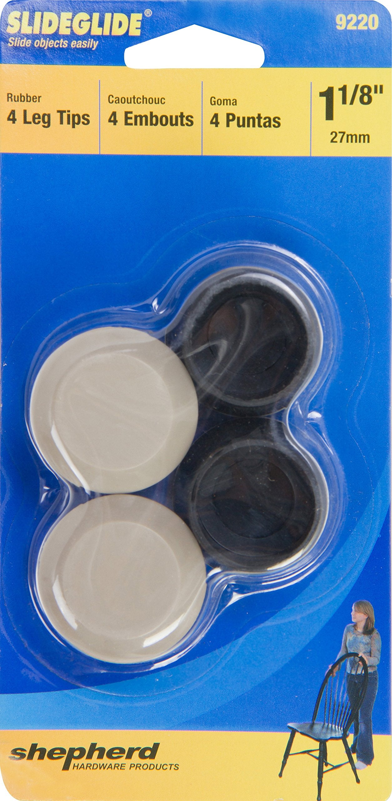 Product Description Shepherd Hardware Low Friction Sliders are designed with reliable SlideGlide technology that allows furniture and appliances to move smoothly over non-abrasive floor surfaces. These low friction furniture sliders make it easy to move or change the furniture layout in your home all by yourself. The Shepherd Hardware 9220 model includes 4 Chair Tip Slide Glides that have a 1-1/8-inch insertion diameter and easily fit over most chair legs to provide superior floor protection. From the Manufacturer Shepherd Slide Glides are designed for use on all non-abrasive floor surfaces such as low pile carpet and vinyl. Slide Glides allow furniture or appliances to move smoothly over floors. Fits 1-1/8 in. diameter chair legs. Includes 4 glides.