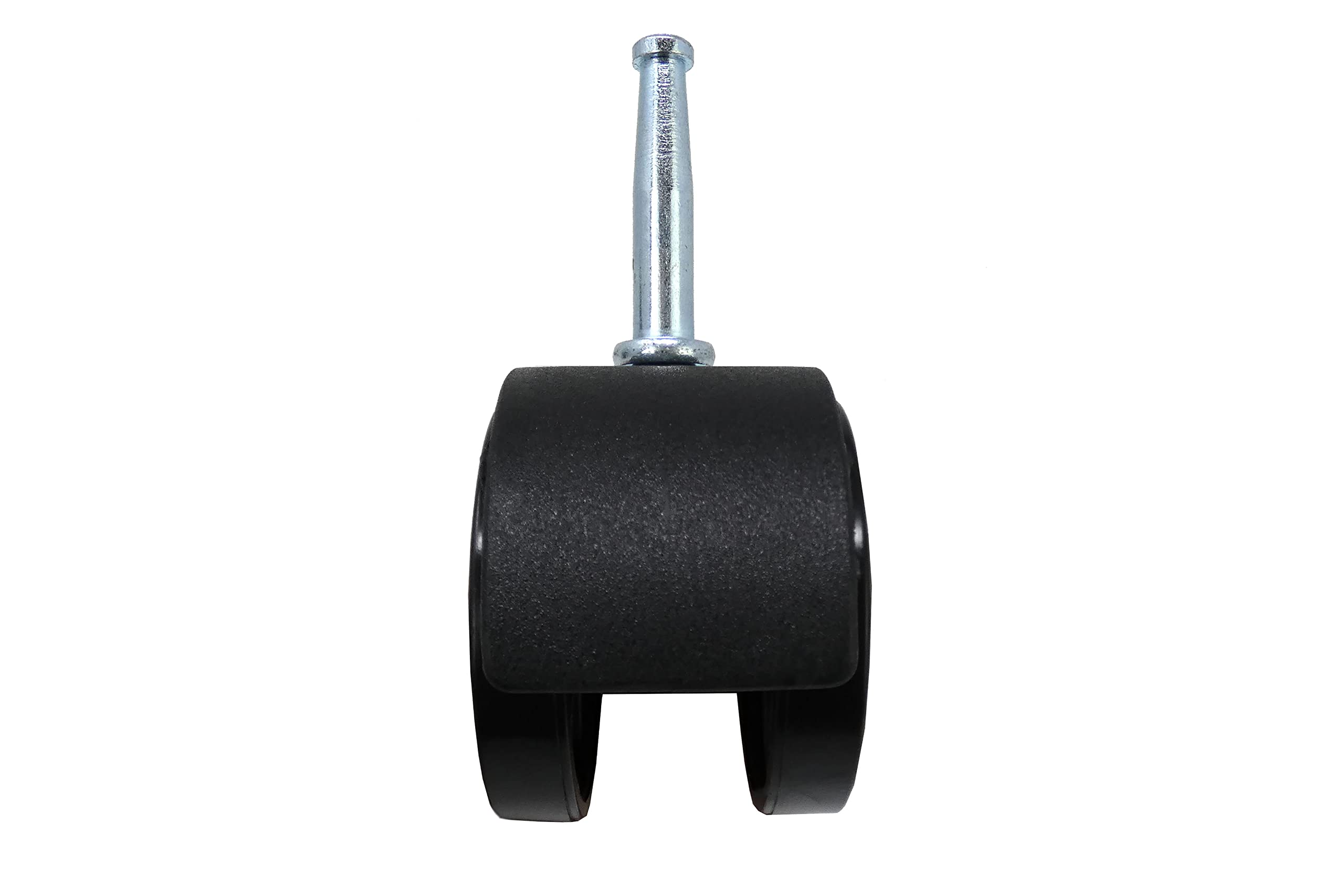 Product Description 2-Inch Twin Wheel Caster place or surface on the carpet pile, and move in oppisite directions to minimize carpet fiber twisting. From the Manufacturer The Shepherd Black Nylon-Stem Twin Wheel Casters measure 2 inches. Dual wheels place more wheel surface on the carpet pile. The wheels move in opposite directions to minimize carpet fiber twisting. These wheel casters are for use on RTA furniture, office chairs, printer stands, entertainment centers, and other items.