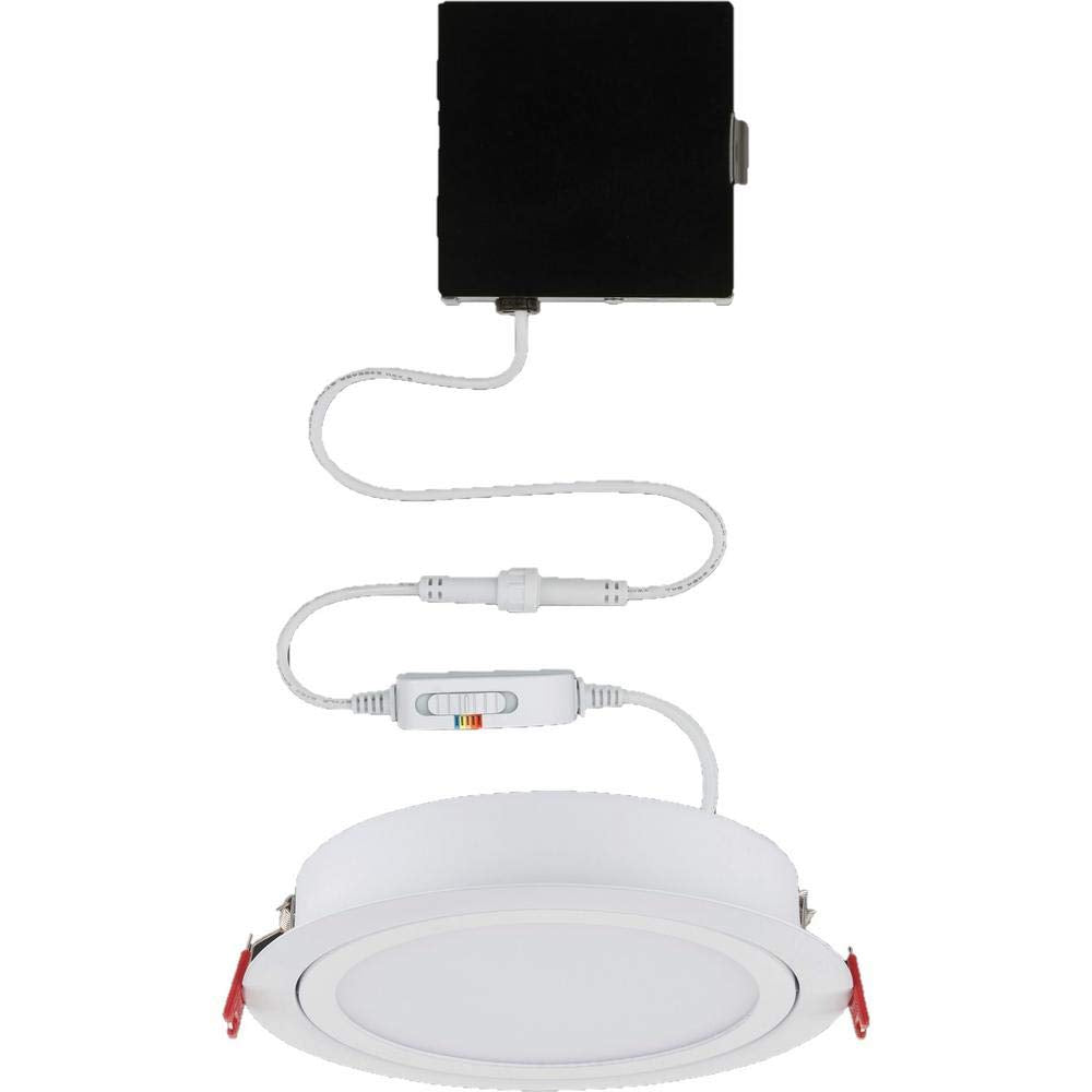 The Color Temperature Select Recessed Lighting Kits are the recessed lights of the future. Not only is each fixture is designed specifically for small spaces where height clearance is limited such as beams or ductwork, you can change the color temperature with a flick of a button. The integrated color changing switch is located on the cable so you can choose between a 2700, 3000, 3500, 4000 or 5000 Kelvin temperature to best suit your needs. 2700 or 3000 Kelvin is perfect for relaxing, 3500 or 4000 Kelvin is the ideal choice for everyday affairs and 5000 Kelvin is great for task lighting in a basement, hallway or work area. Energy Star certified, and IC rated for direct contact with insulation, these lights won't overheat, do not require a bulky can and will last for years to come - 50 000 hours or approximately 34 years if used for 4 hours per day to be exact. Wet rated and certified airtight, this 6" kit is perfect for your bathroom, drop ceilings, outdoor soffits, larger spaces and all general lighting applications. SELECTABLE COLOR TEMPERATURE: with the flick of a button, choose the color temperature that works best for your space - 2700 - 3000 Kelvin is perfect for relaxing, 3500 - 4000 Kelvin is the ideal choice for everyday affairs and 5000 Kelvin is great for task lighting in a basement, hallway or work area EASY INSTALL SLIM LED: an ultra-thin profile, integrated LED and a slim junction box will not interfere with your joists or ductwork. Effortless push and click quick connects allows for worry free, easy installation and are the choi