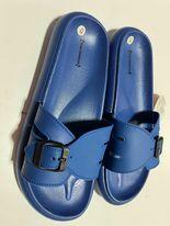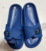 The perfect, easy breezy summertime slide, these sleek Blue sandals with any summer outfit.