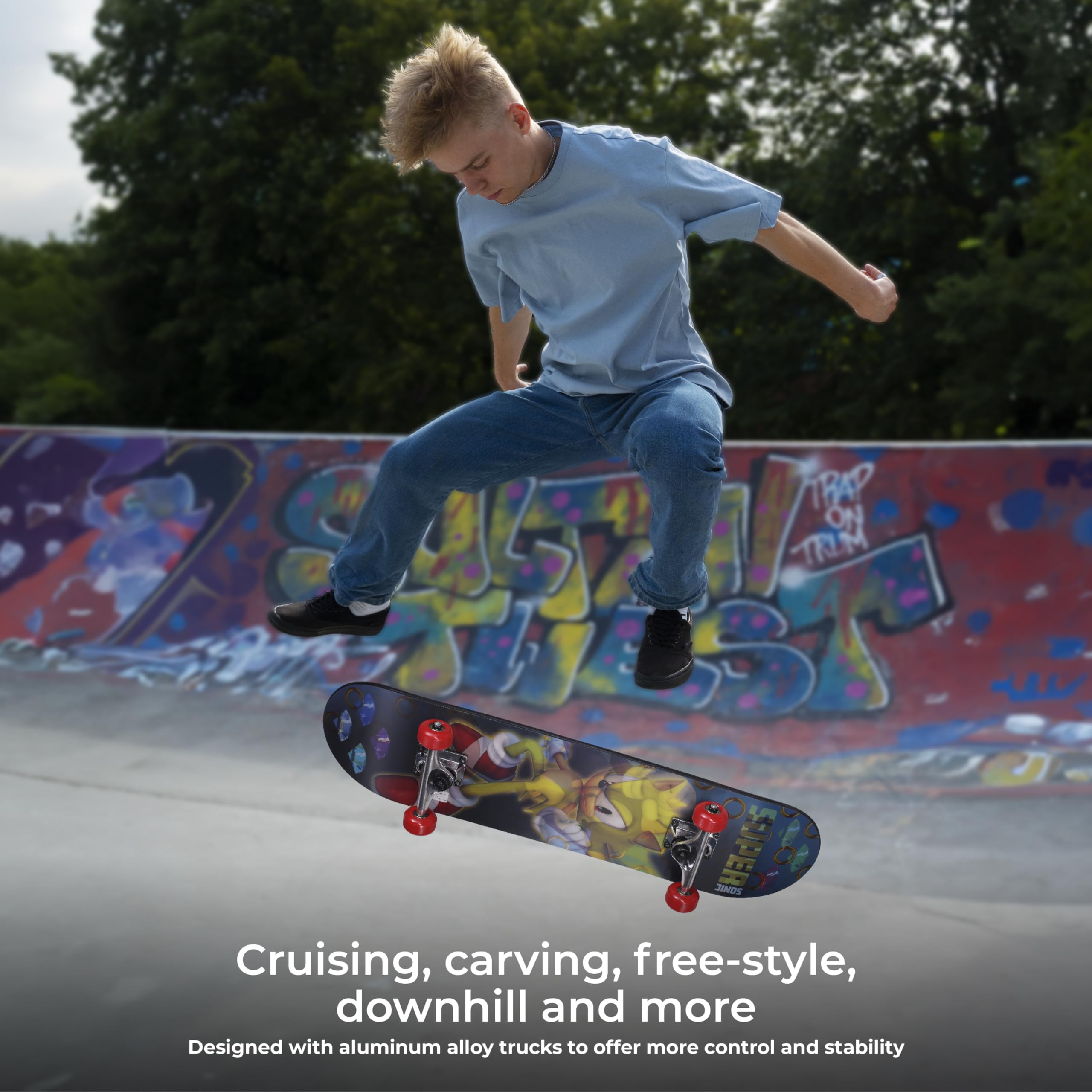 Seller Notes: This was a Store DemoThe Sonic the Hedgehog skateboard gives you the ultimate skateboard deck with pro trucks and wheels for any fan of the legendary skater! Our kids outdoor skateboard makes the perfect gift for teen girls and boys in need of a board that can hold its own at the local skatepark or skateboard ramp. The durable skateboard decks ensure your kids' skateboard can take a little abuse at the skate ramp, and the sleek traditional design makes our skateboards much more versatile than standard cruiser skateboards.