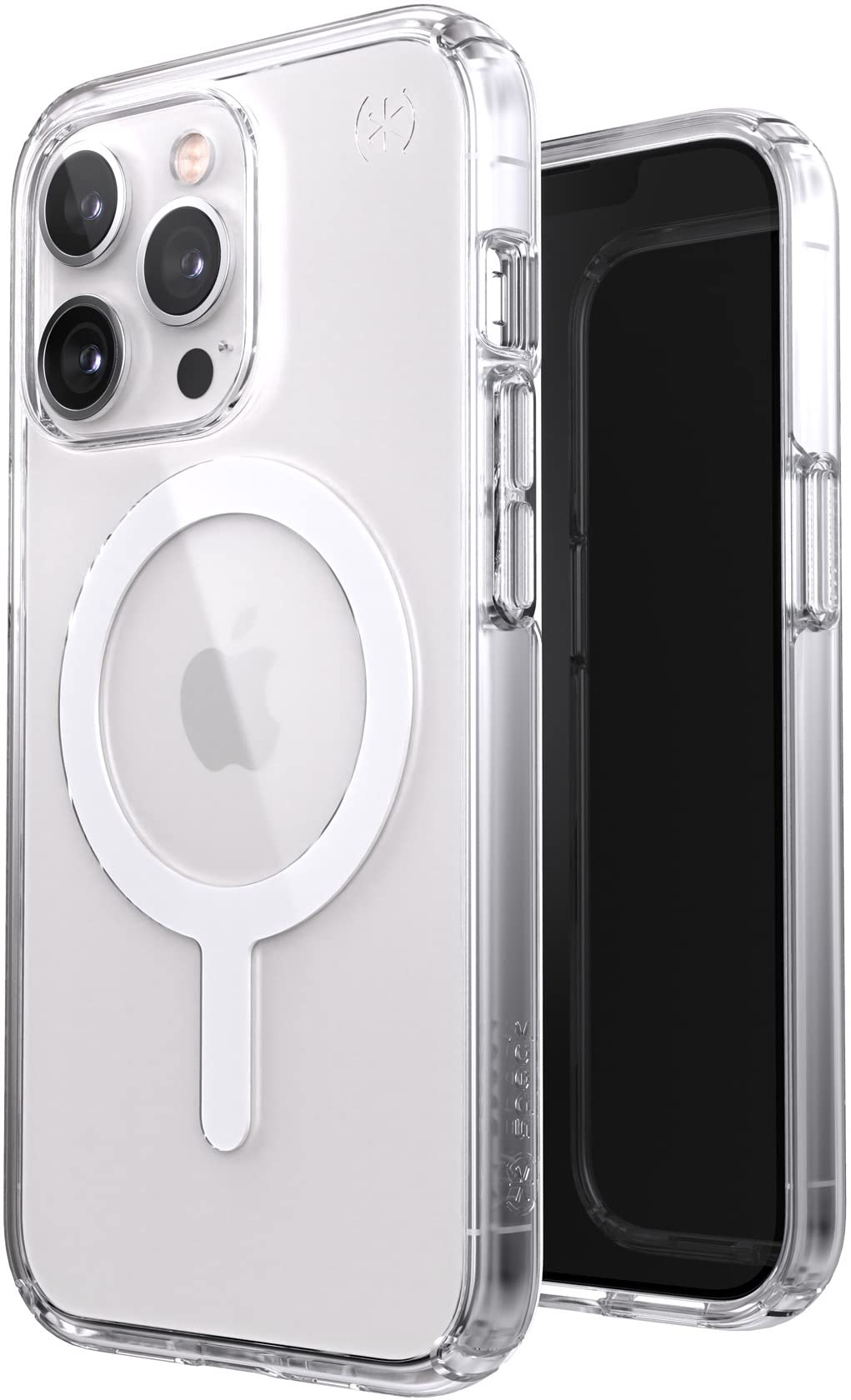 Speck Presidio Perfect Clear Case with MagSafe for Apple iPhone 13 Pro - Clear Protect your phone from drops, bumps and dings with the Presidio Perfect Clear Case with MagSafe for iPhone 13 Pro. The innovative, Perfect-Clear coating prevents yellowing and discoloration to keep your case looking clear. Clear impact technology and raised bezels around the screen protect against drops up to 13 feet. And, it's MagSafe compatible, so you don't have to remove your case to charge your phone. Antimicrobial protection. Keep your case free of dirt and germs. Microban antimicrobial protection reduces bacteria growth by up to 99%. Compatible With: Apple iPhone 13 Pro;
