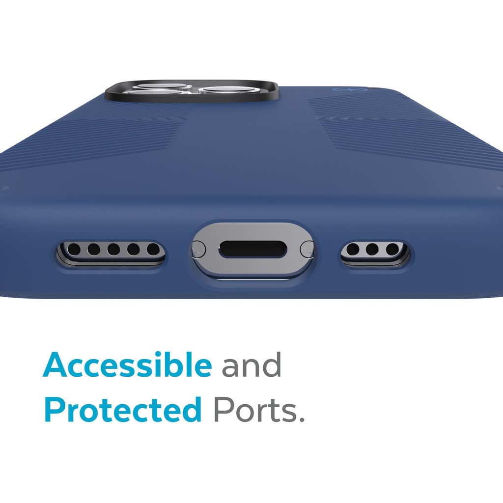 Speck Presidio2 Grip Hard Shell Case for Apple iPhone 13 Pro - Coastal Blue PRESIDIO2 GRIP is a super protective and pocket-friendly case that has a soft-touch finish for ultimate comfort plus newly innovative no-slip grips for more confidence when texting, talking, or taking photos. Not only is this case stylish, but Presidio2 Armor Cloud technology makes it tough for rough moments. Weve lined the perimeter of every case with air capsules. On impact, they compress and suspend your phone on a cushion of air, just like an airbag. These cases have been tested in the real world to withstand drops of up to 13 feet, so youll be confident knowing your phone will be protected. For ease of use you can feel, experience a precise fit tailor-made for your device with the addition of enhanced ultra-responsive buttons for smoother clicks and volume control. Durable yet slim, this case allows for easy wireless charging with MagSafe and Qi for a seamless charge. If that wasnt enough, it also features our raised bezel. This added edge helps protect your screen from scratching and shattering if, and/or when your phone falls and lands face-down. Compatible With: Apple iPhone 13 Pro;