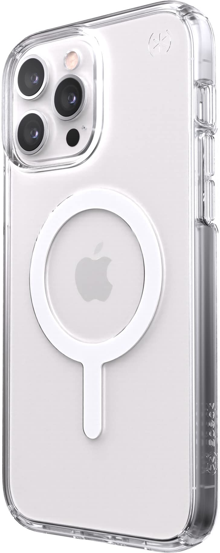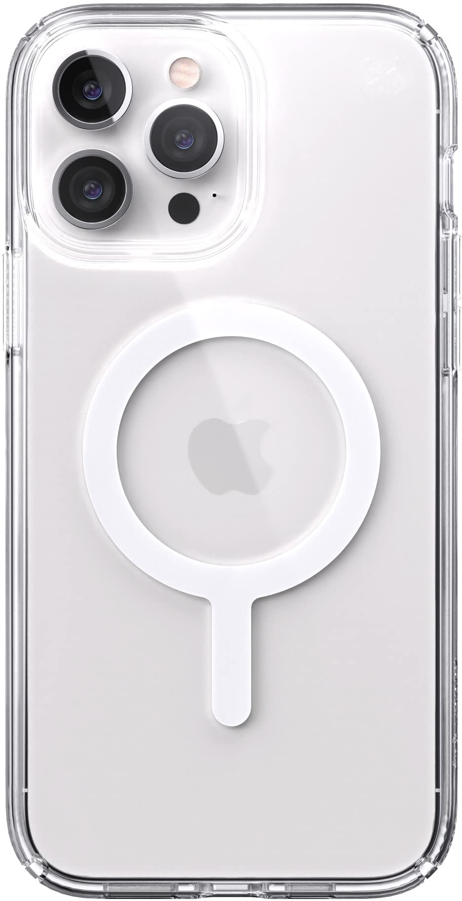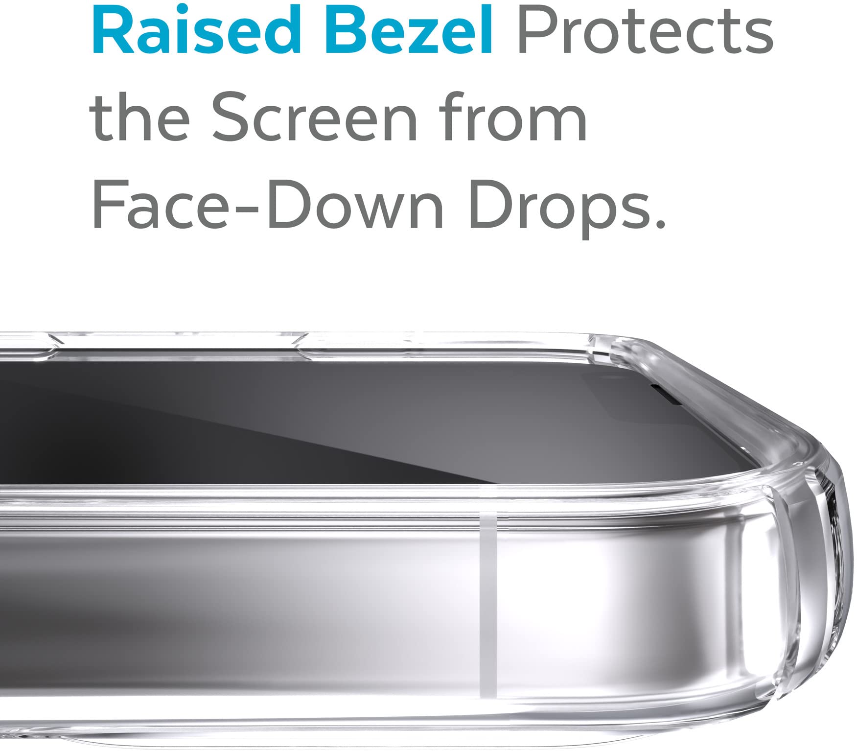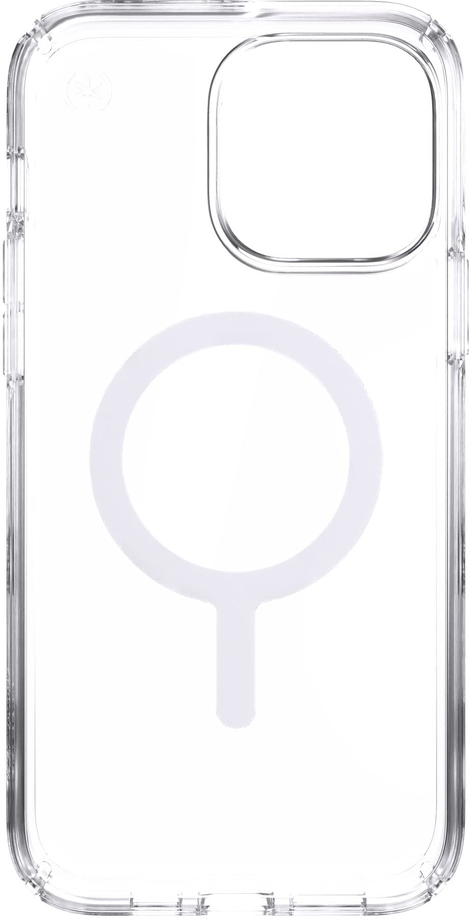 Defend against drops with the Spec Products Presidio Perfect-Clear ProMac MagSafe Case. Built-in clear impact technology cushions your device against drops from up to 13', while the Microban technology reduces the risk of bacterial growth. Offers drop protection up to 13'. Clear impact technology cushions your phone. Raised bezel screen protection. Perfect-Clear coating is resistant to discoloration. Microban technology protects against bacteria growth.