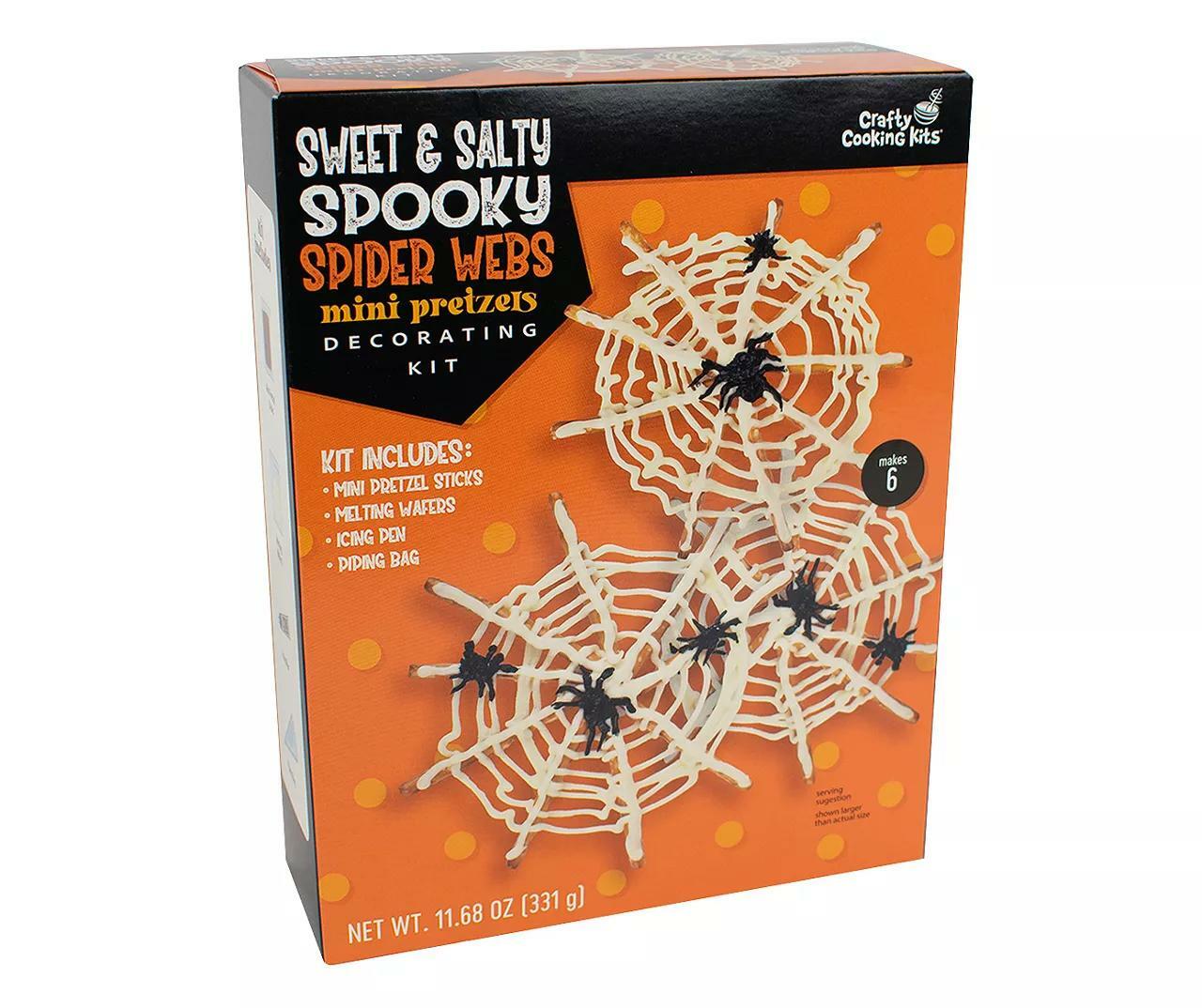 Try these Pretzel Spider Webs for an enchanted Halloween treat! Mini pretzels pair with creamy white melting wafers and a black icing pen and are decorated into spooky spider webs. We include everything you need for this fun Halloween treat!