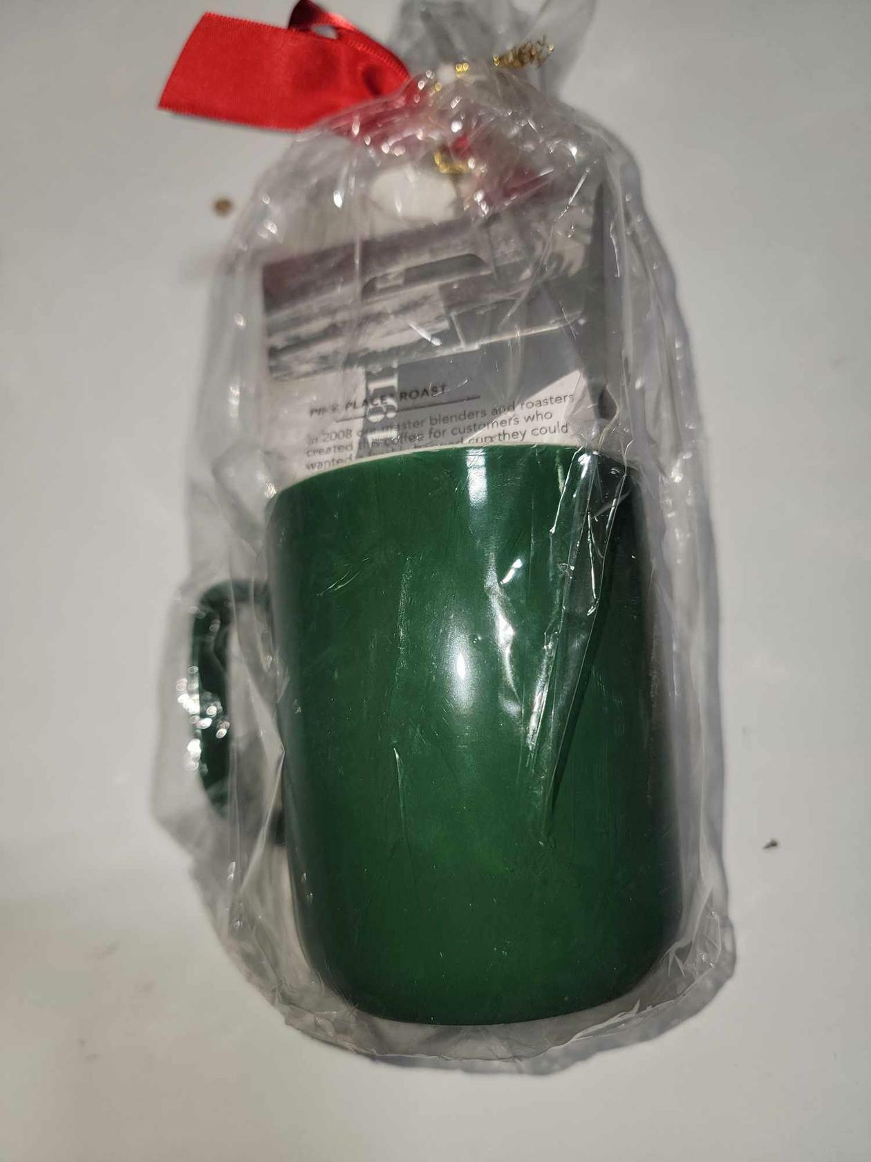 The Starbucks ceramic green coffee mug is a sleek, modern design with a smooth, glossy finish. The mug is a vibrant green color, reminiscent of fresh coffee beans or the deep tones of a forest. It has a classic, slightly rounded shape with a comfortable handle that fits perfectly in your hand. On the front, you'll notice the iconic Starbucks logo, typically in white, centered prominently.