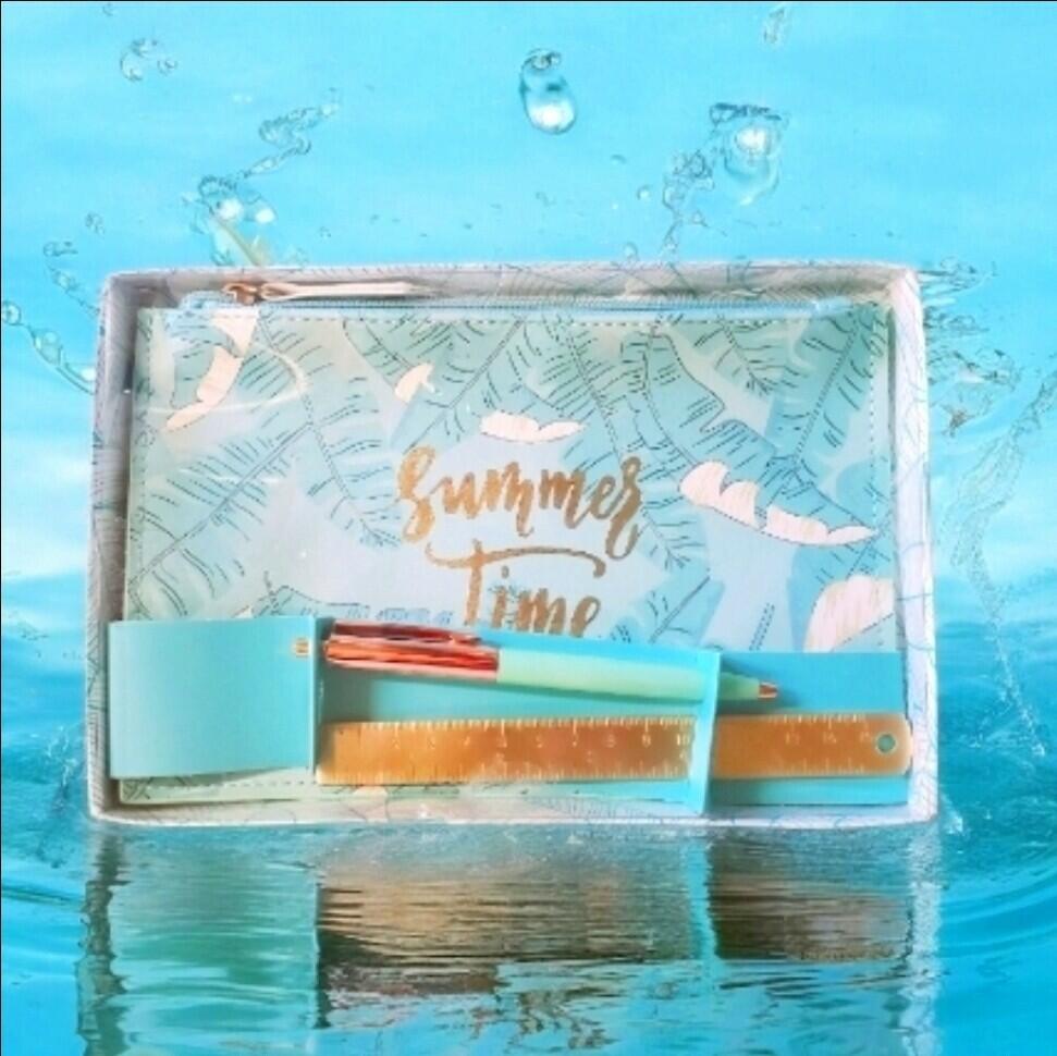 Stationary Set Includes Pouch Ruler & Pen The Pouch says Summer Time on it and has a...