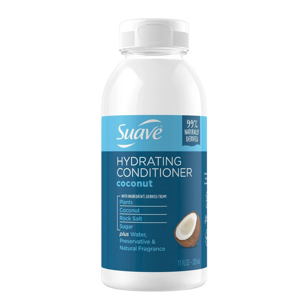 Introduce your dry locks to the ultimate in clean hydration. Suave Coconut Hydrating Conditioner nourishes and hydrates hair with a clean, sulfate-free formula for dry hair. Give your hair the extra dose of hydration it needs with an effective, clean formula and fresh scent. Try a conditioner for hair that?s transparent about what?s inside. Discover a cleaner way to care for hair. Formulated with naturally derived ingredients you know and recognize, this conditioner is made with ingredients derived from plants, coconut, rock salt and sugar, plus water, preservatives and natural fragrance. Say no to nasties! We?re transparent about what is inside our Coconut Hydrating Conditioner because the super hydrating formula is 99percent naturally derived and free of parabens, dyes and silicones. Even the fresh and tropical coconut scent is naturally derived! Suave Coconut Hydrating Conditioner is a part of our natural hair care collection developed with no nasties, transparent formulas and ingredients that work.