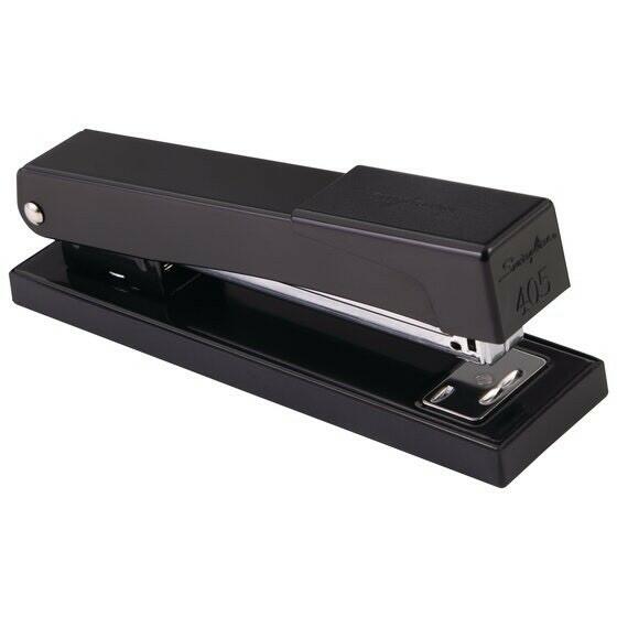 Swingline light duty stapler, 20 sheet capacity, black light-duty stapler offers an all-metal construction, open-channel loading. Full rubber slipper for comfortable hand use. Uses standard-size staples. Light-duty stapler offers 210-strip staple capacity. Staples up to 20 sheets.