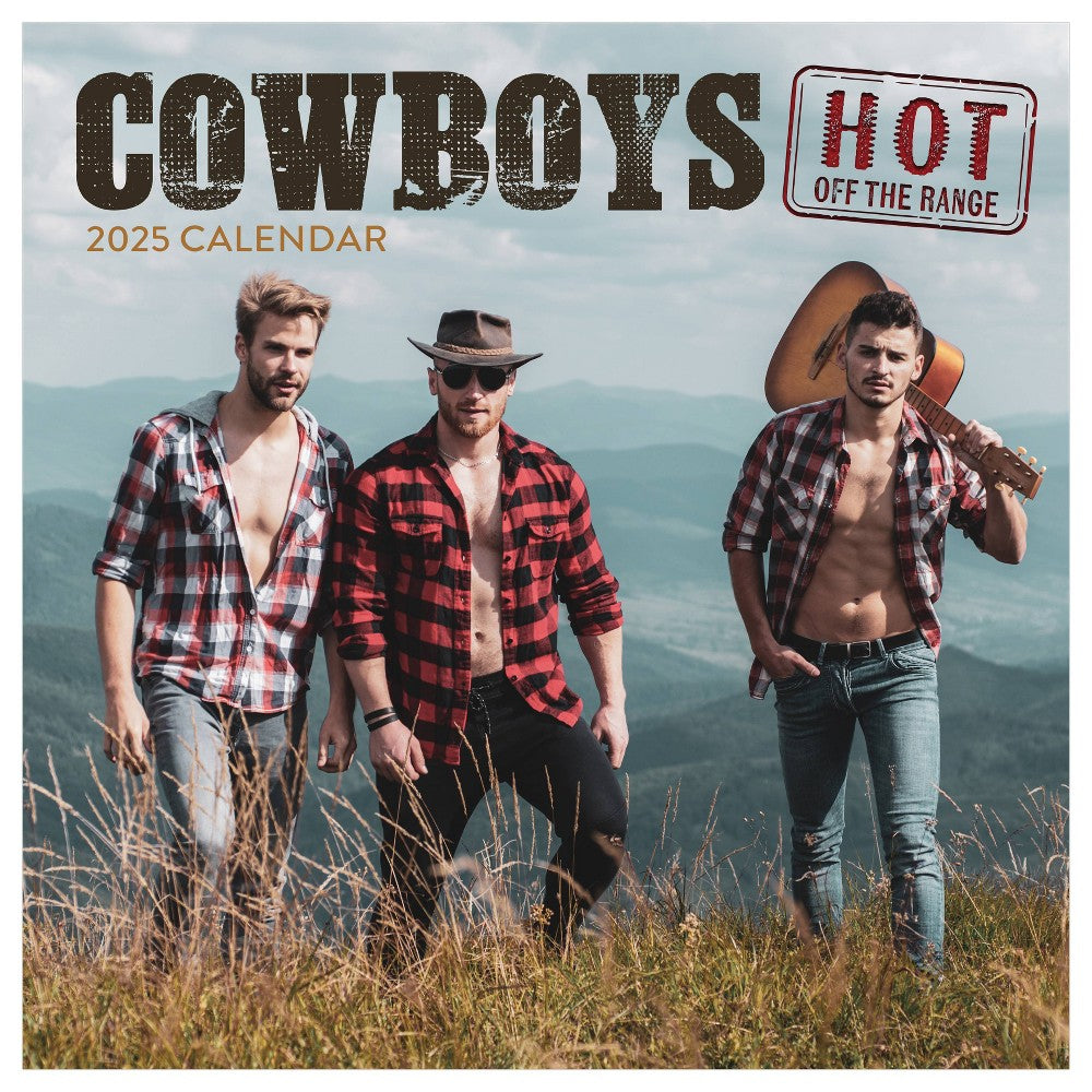 Saddle up and lasso your favorite hunky cowboys coming in hot off the range! This 2025 12-month wall calendar spans January 2025 - December 2025 and measures 12" x 12" (12" x 24" open). This calendar includes twelve full-color images combined with monthly calendar grids and a bonus spread featuring a 4-month view of January 2026 - April 2026 and a lined contact and notes page. Printed on premium gloss paper.
