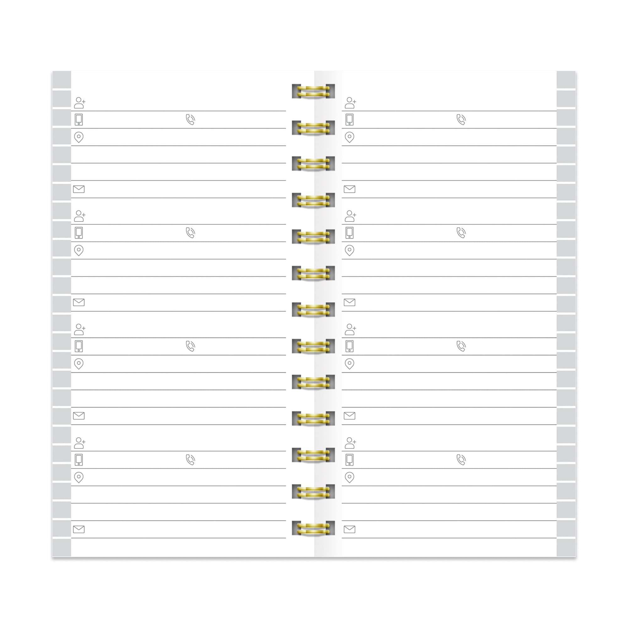 TF Publishings Gray Spiral Address Book is the perfect way for you to log all of the important information and details about your favorite contacts! The 3.5 x 6.5 size allows you to take it with you in your purse, backpack or briefcase so youll always have the info you need right at your fingertips. The 60 lined pages are broken down into segments and are labeled for the details you should include. The gold wire-o binding and sleek, textured covers look good while also protecting the address book wherever your busy day takes you!