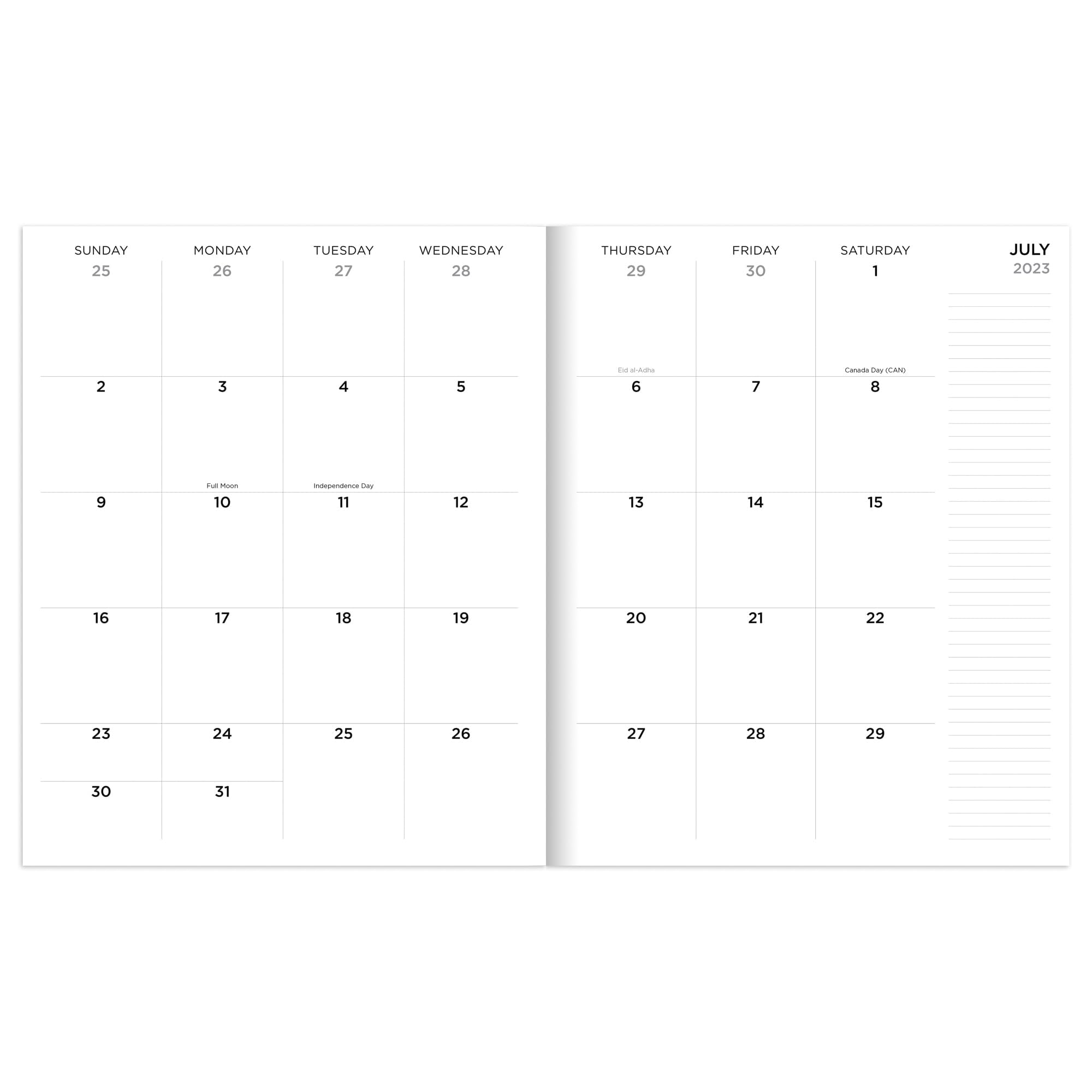 TF Publishings Academic Year July 2023 - June 2024 Paint Splatter Large Monthly Planner makes organizing and planning simple! The 2 page monthly spreads include extra large calendar grids for daily plans, note pages, and inspirational prompts with goal and task trackers. The pliable covers make the planner look good while also protecting it and helping it lay flat wherever you use it.
