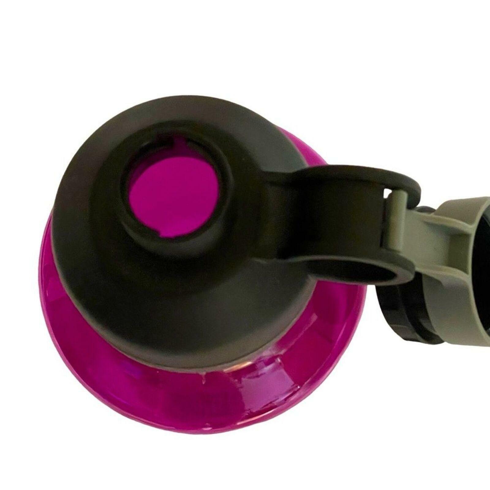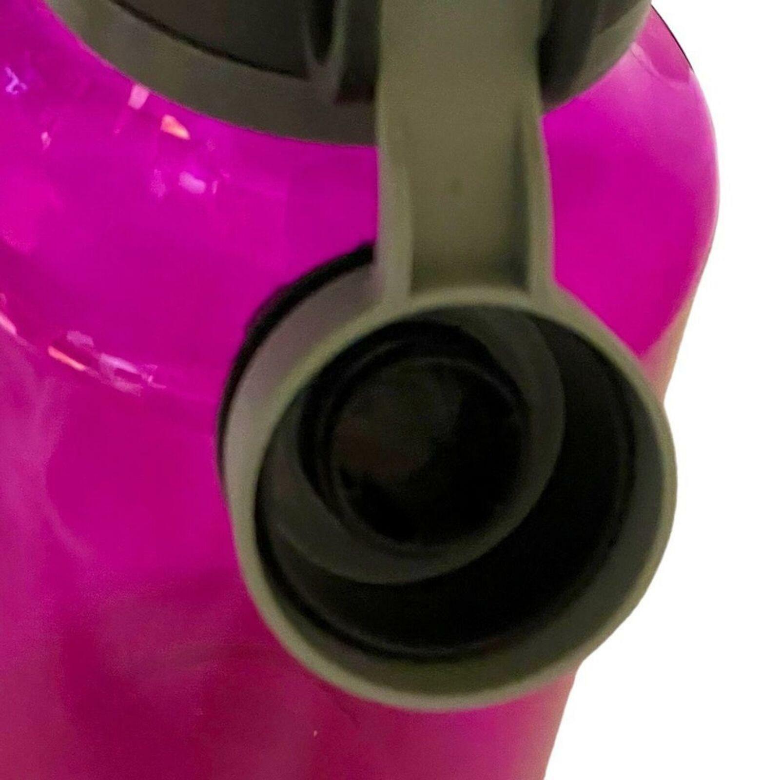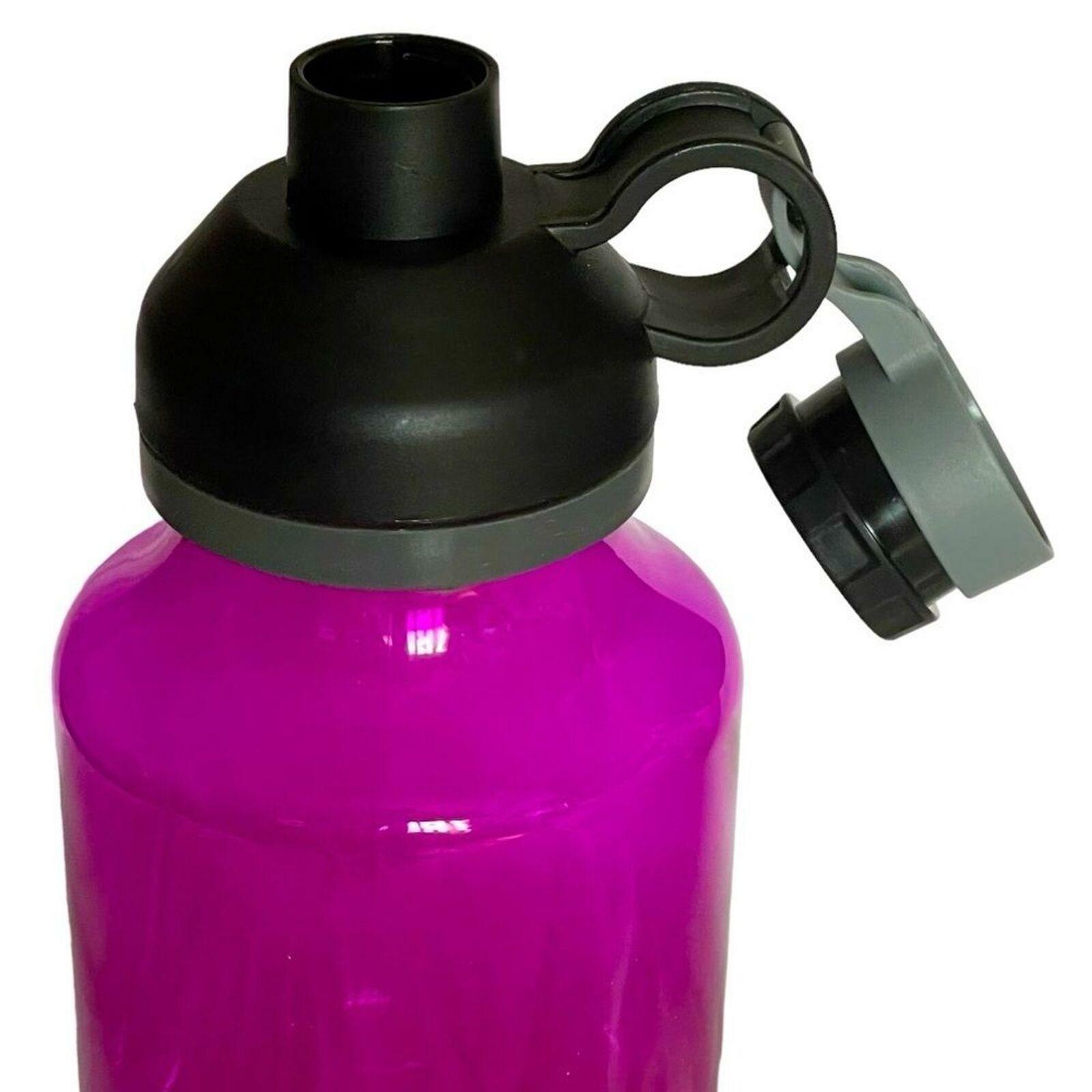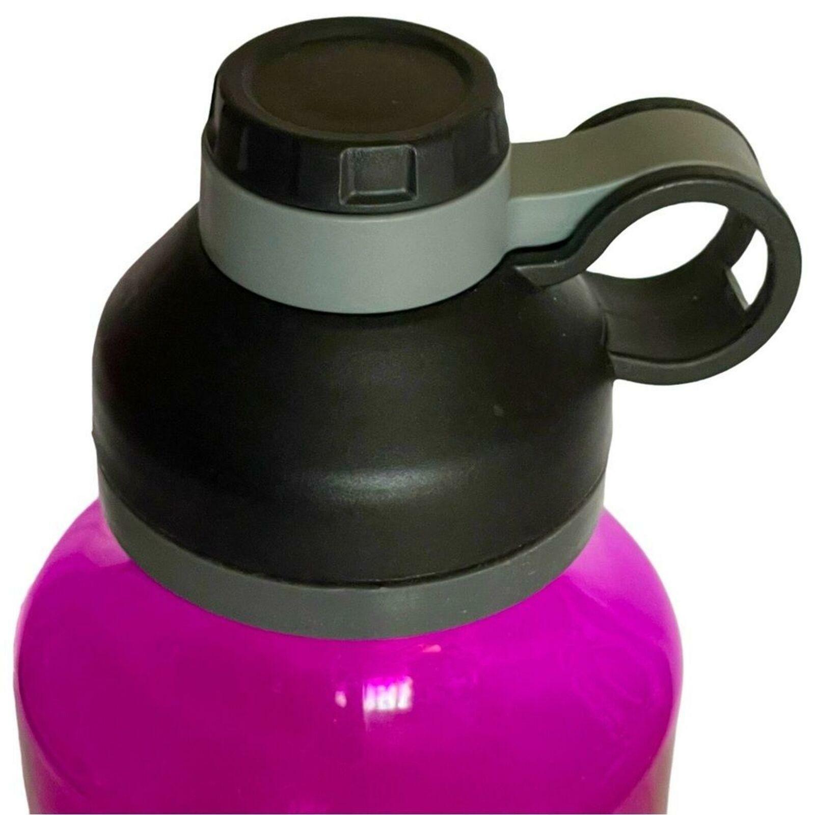 The 64 oz. Hydrator Water Bottle. The perfect take along for hiking, walking, cycling or road trips. Semi-transparent fuchsia pink bottle with two-way black and gray screw top. Sturdy loop for carrying. Hand washing is recommended.